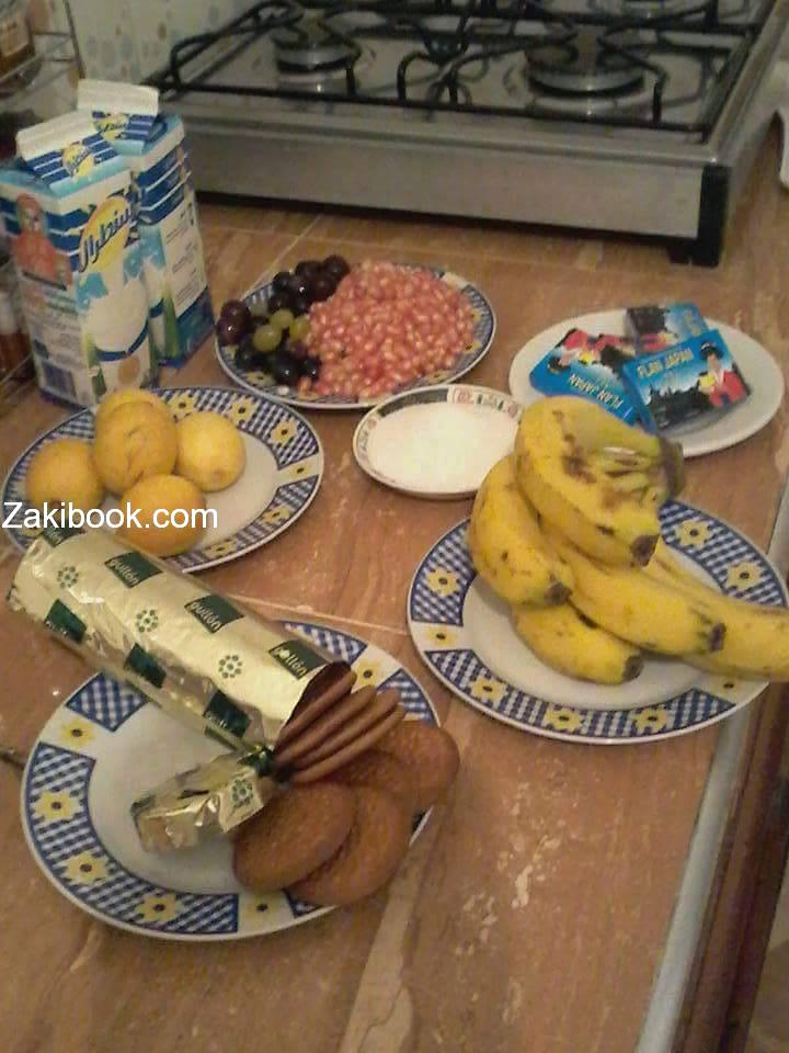 وترجعي تحطي البسكوت وكمان موز واخر وحدة بسكوت كمان
