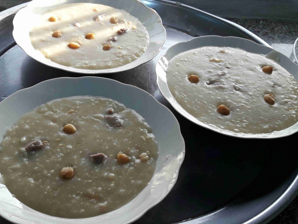 سلق اللحمه بعد غسلها وقبل ان تستوي نضيف لها كوب حمص وكوب رز وبس تستوي اللحمه والحمص والرز نضيف لها الكشك بنكون نافعينه بالماء ثم نضربه بالخلاط ونصفيه ثم نضع مكعب ماجي ونحرك لحتى يجمد ونقدح ثوم مقطع ونديره على الكشك ثم نديره بصحون ويأكل مع الخبز غماس مع الشطة طيب كتير من اكلات الشتاء ملاحظه الكشك يعمل بالبيت مكون من قمح وحليب ولبن وفلفل احمر ويعملوه اقراص ويضعوه بالشمس ليجف وموجود جاهز انا اشتريته جاهز من