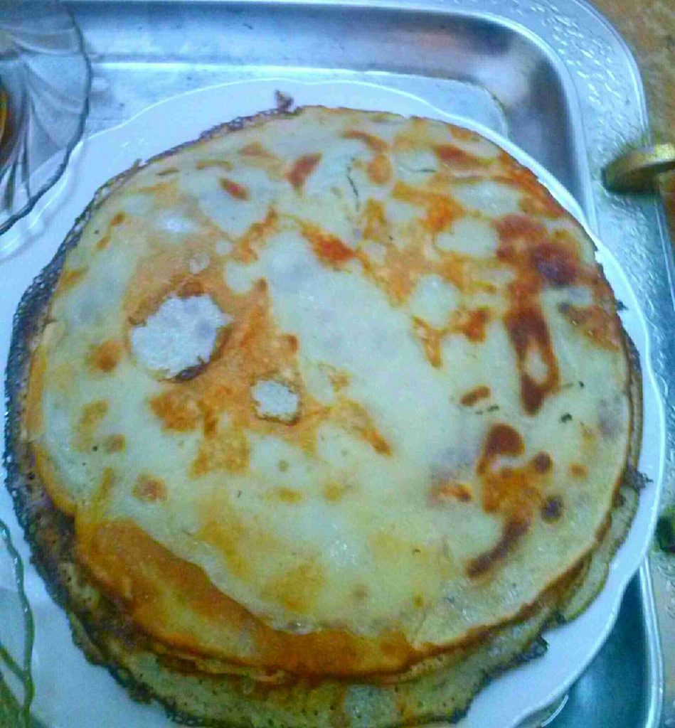 نخلط كل المكونات يدوي أو بالخلاط بنحمي قلاية تيفال وبنصير نصب من الخليط فيها على شكل قرص الحجم الي بتحبوه وبنقلبه عالجهة التانية هيك لحتى نخلص الكمية