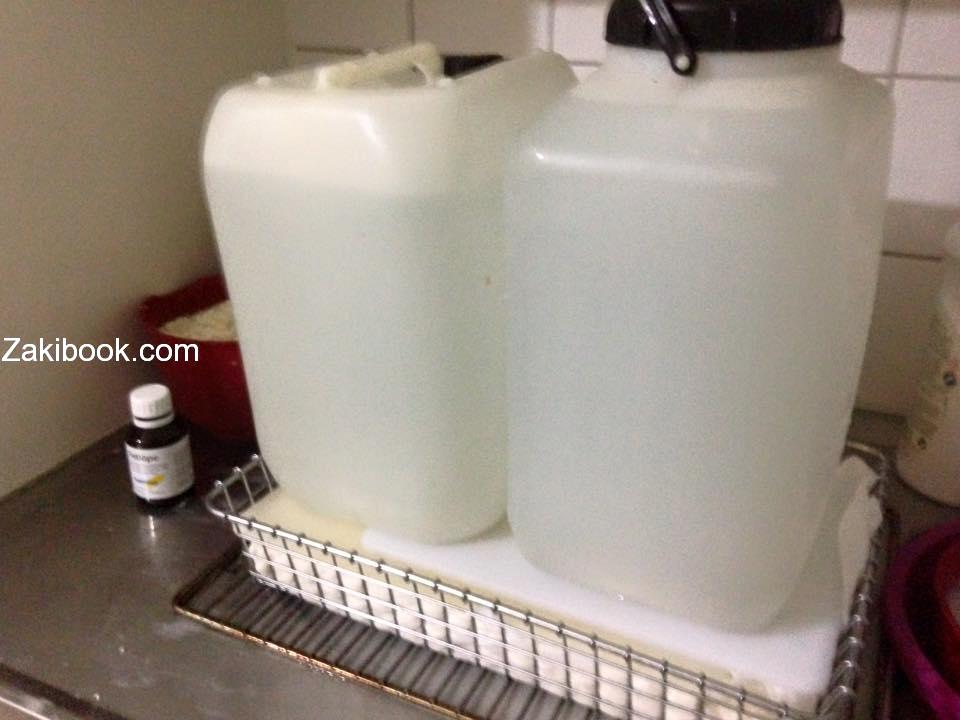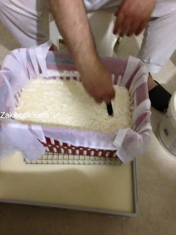 بتغلي الحليب على درجة ٣٨ وبعدين بتحطي المنفحة انا يلي عندي سائله مقدار ملعقتين لكل عشرة كيلو حليب