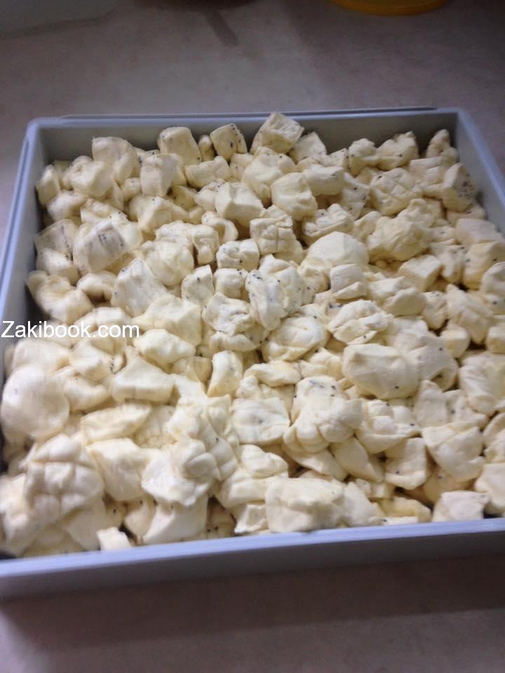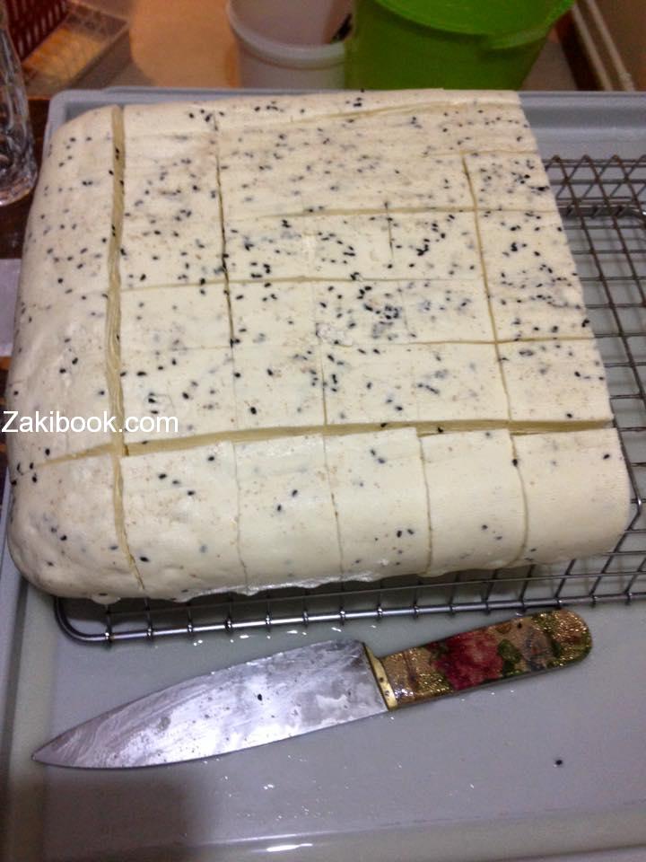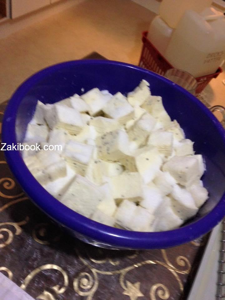 وبتغطيها ساعتين وبتتركيها ( ممكن إضافة حبة البركة للجبنة قبل التغطية وتحريكها )