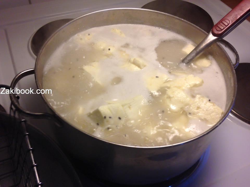 والماء يلي طلعت منها بتصفيها وبترجعي بتغليها وقت بتغلي متل الحليب بتطحي خل وبتفرط بتصير قريشه وصحا وهنا