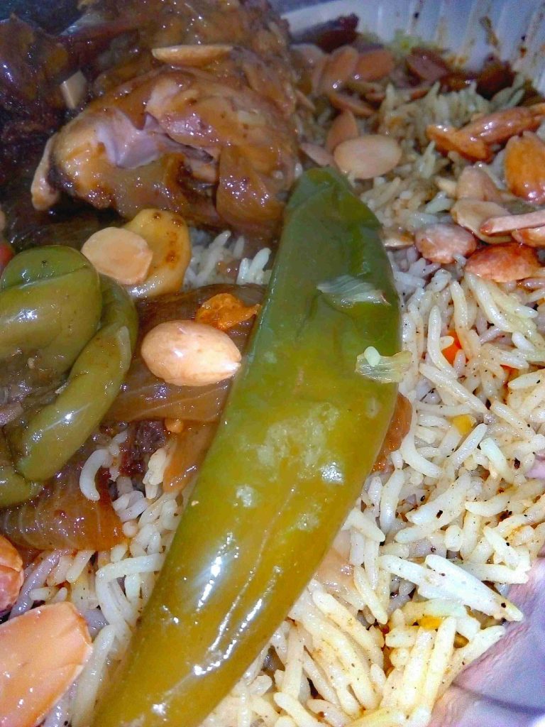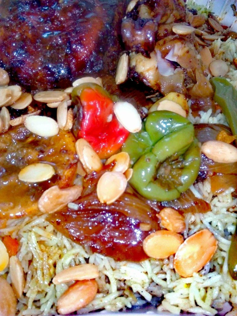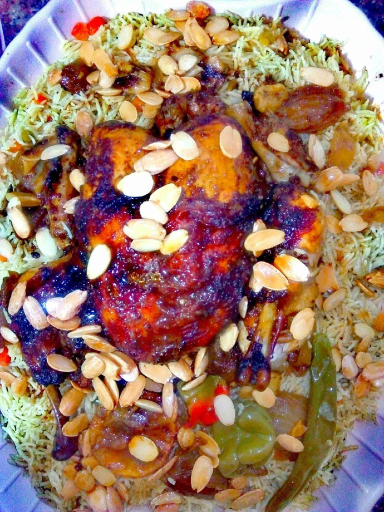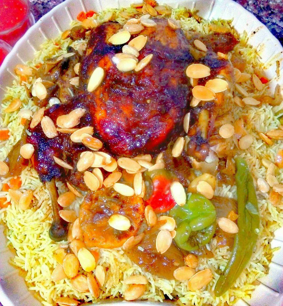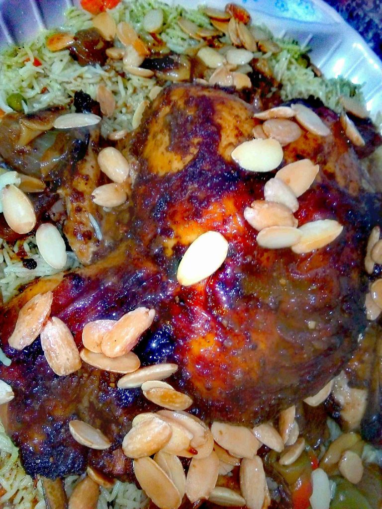 بيتقدم الارز المبهر وفوقه الدجاجة وبتزينيه باللوز وصحة وهنا.