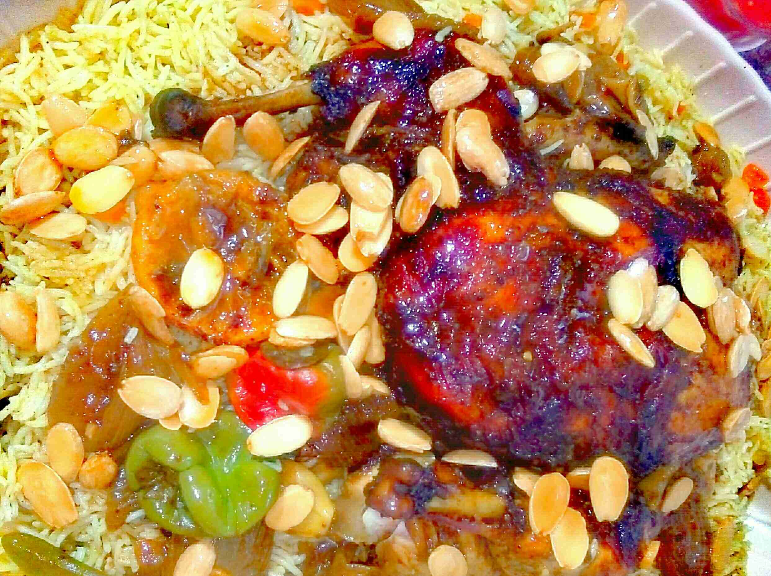 بيتقدم الارز المبهر وفوقه الدجاجة وبتزينيه باللوز وصحة وهنا.