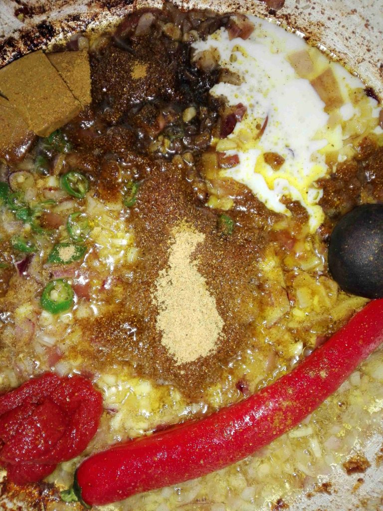 وبزيدها شوية زيت وكاري وبهارات وفلفل اسود ورشة ملح بسيطه وكاسة مي ساخنه وبقصدرها وبحطها بالفرن عالنار عاليه لنص ساعه وبعدين بوطي تحتها للوسط وبتركها تستوي لحتى اجهز الارز ..ولما تستوي اللحمه بحمرها وهيك بتكون جاهزه ..
