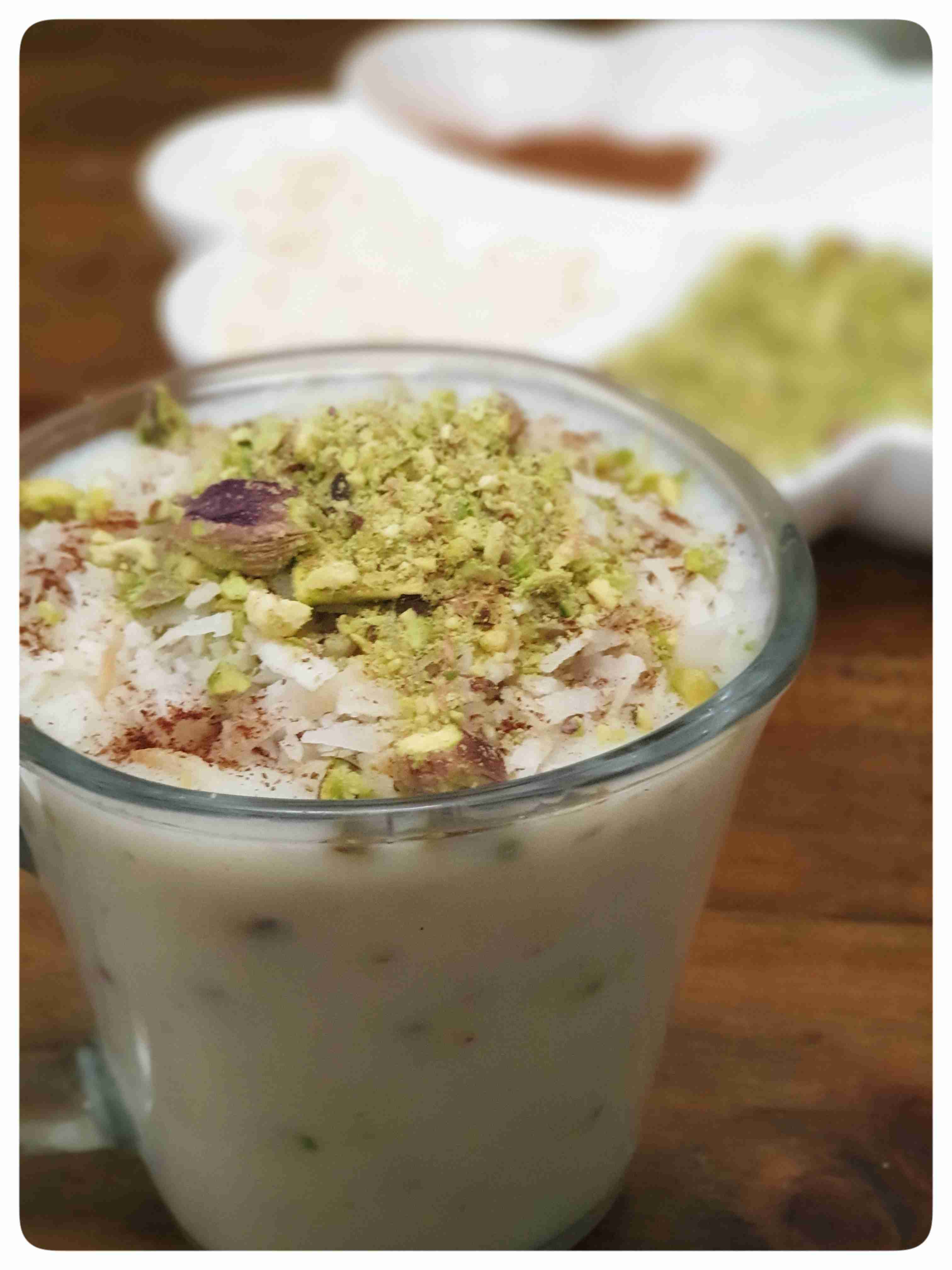 نضع جميع المكونات بكاسروله مع الفستق الحلبي ايضاً ونخلطهم جيداً ثم نضعها على نار متوسطه مع الاستمرار بالتحريك حتى تقارب على الغليان نخفف النار ونتركها لمدة ٥ دقائق مع التحريك بعد ذلك نسكبها بالكاسات ونزينها بالمكسرات ونقدمها مباشره وهي ساخنه وتلذذي بالطعم الرائع وشعورك بالدفئ