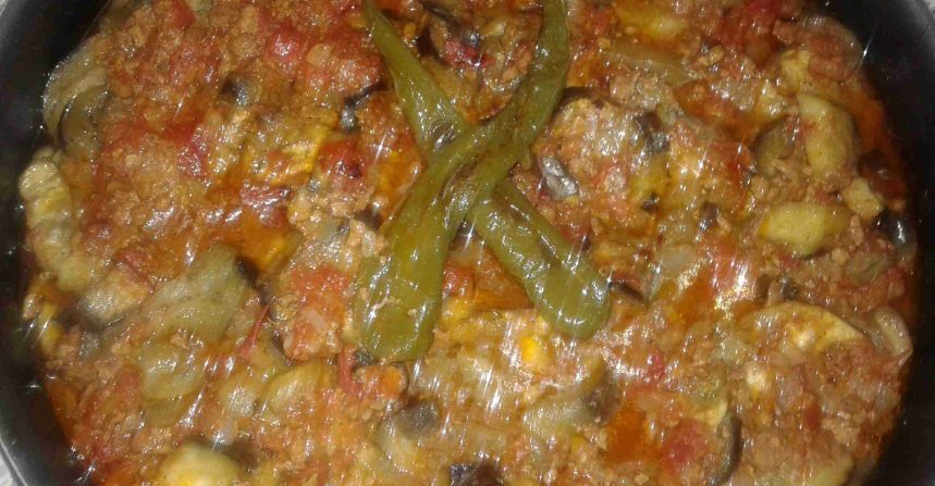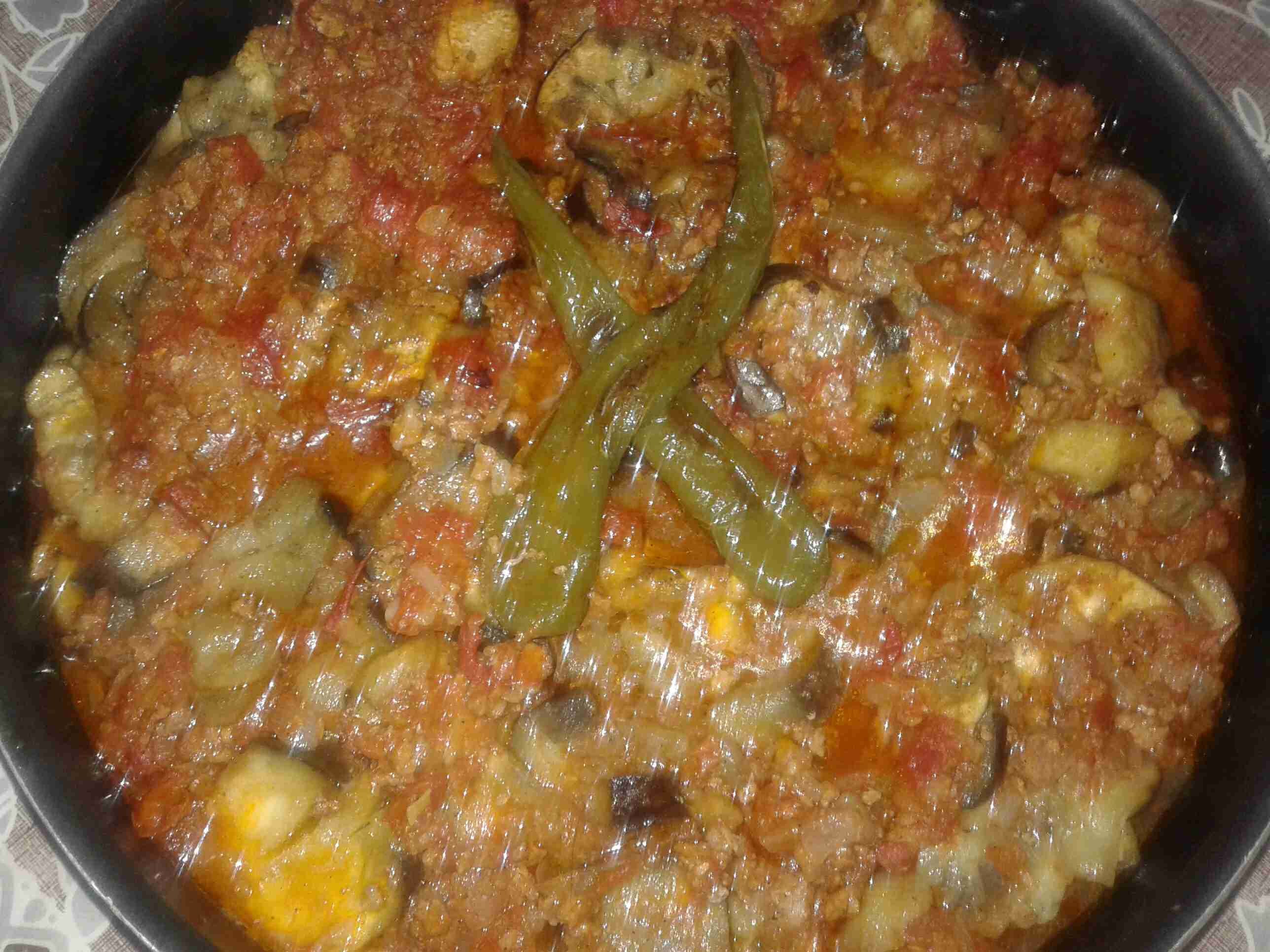 اول شي عسلت الباذنحان وقشرته وقطعته وحطيته بالصينيه وبهرته وحطيتله فنجان الزيت والملح والفلفل والبهارات وحطيتله شوية شوربه وقصدرته وحطيته بالفرن وبتقدري تخليه على عين الغاز على نار متوسطه اقل من نص ساعه بتلاقيه تذبل في هذه الاثناء بكون قلبت البصل ةالثوم واللحمه مع بعص وبضيف الهم البندوره المفرونه ناعم وبقلبهم كويس لما يتذبلو وبضيفلهم البهارات ومعلقة صلصه والفلفل الاسود وبطفي عليهم انا حضرت صينيه تانيه وحطيت فيها نص كمية الباذنجان وحطيت فوقها نص كمية اللحمه والبندوره وهكذا عملتهم طبقات وحمرتهم بالفرن وطلعوا رووووعه منزله خاليه من الزيوت والف صحه وهنا بتمنى انها تنال اعجابكم….ربنا يكرمكم جميعا يا غاليات