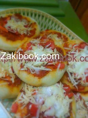ندهن صينية فرن بالقليل من زيت الزيتون ونفرد فوقها دوائر العجين بعد أن شكلناها دوائر ، ونضع فوقهم خليط الحشوة وترش بجبن شيدر أو الموزريلا وتدخل فرن حامي وبصحة وعافية.