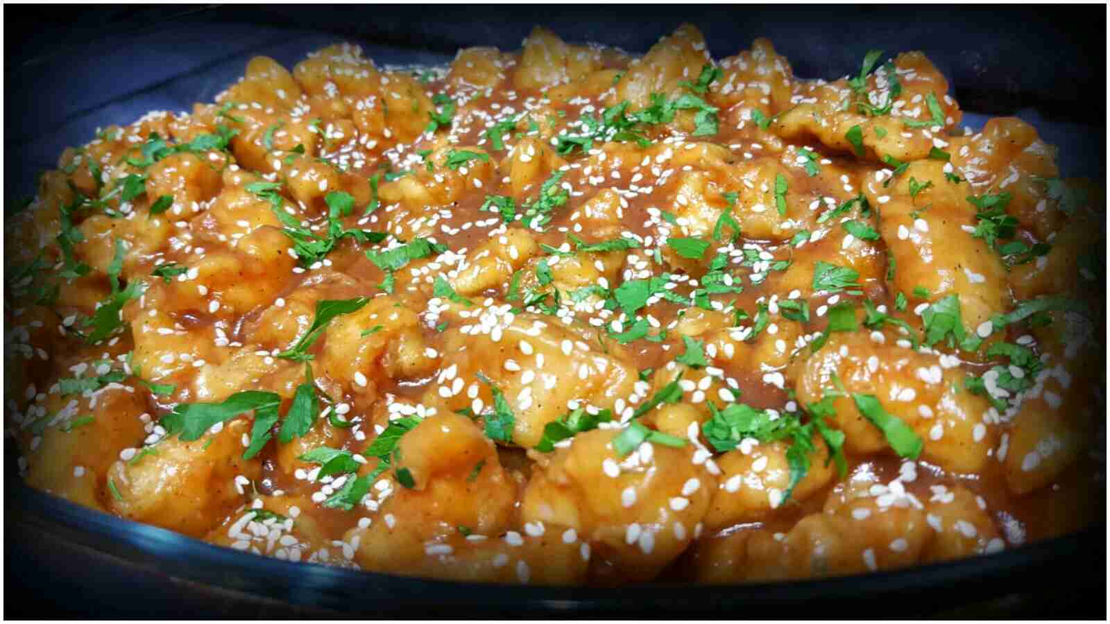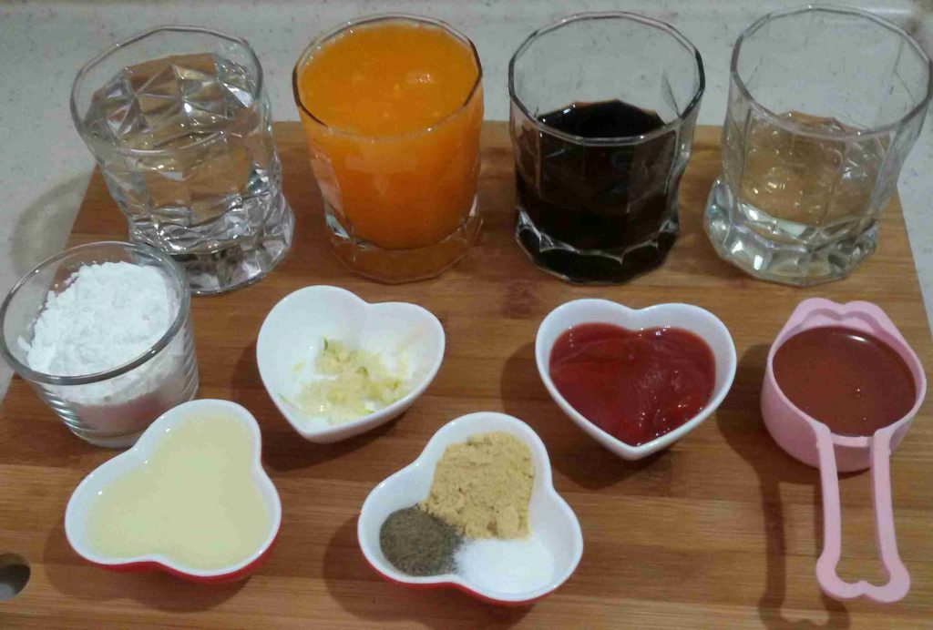 منحمس الثوم والزنجبيل بالزيت ومنضيف عليهم الصويا صوص والخل وعصير البرتقال والكتشب والعسل او السكر والملح والفلفل منحركهم مع بعض ليختلطو منيح منضيف الماء اللي مدوبين فيه النشا ومنحرك ليتقل المزيج منضيف عليهم قطع الجاج المقلية ومنقلب شوي ليمتزج كل شي مع بعضو وخلص صار جاهز للتقديم