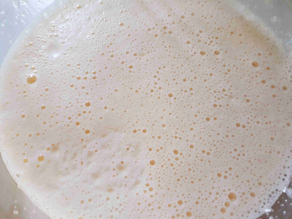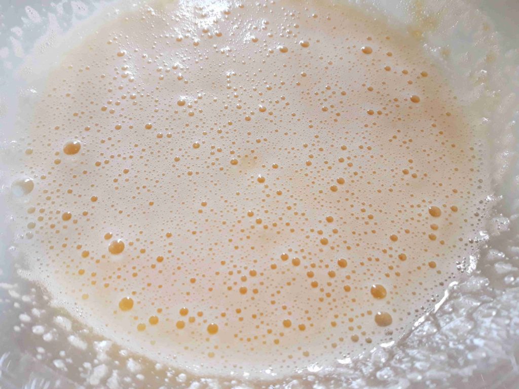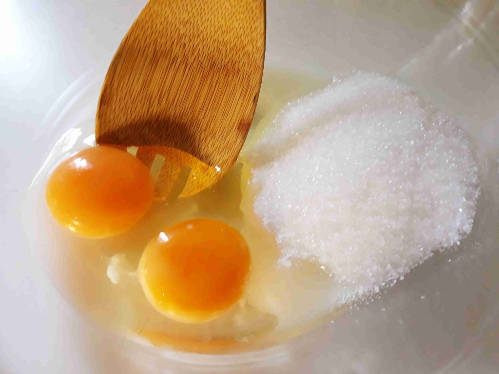 بالبدايه بنخفق البيض والسكر والفانيلا والخل وعصير البيممون وبعدين بنضيفلهم الحليب والزيت وبنستمر بالخفق وبنبلش نضيف السميد