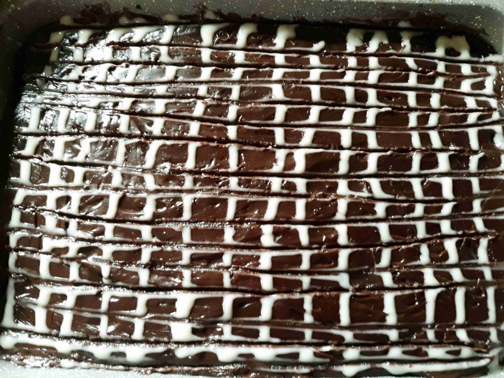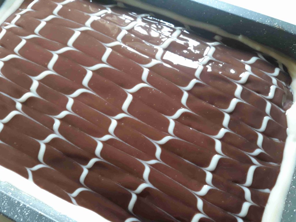 ملاحضه بتقدرو تحطو علب دانيت شوكولاه جاهزه فوق البسبوسه اذا مستعجلين او اذا حابين يطلع شكل الخطوط ارتب واحلا