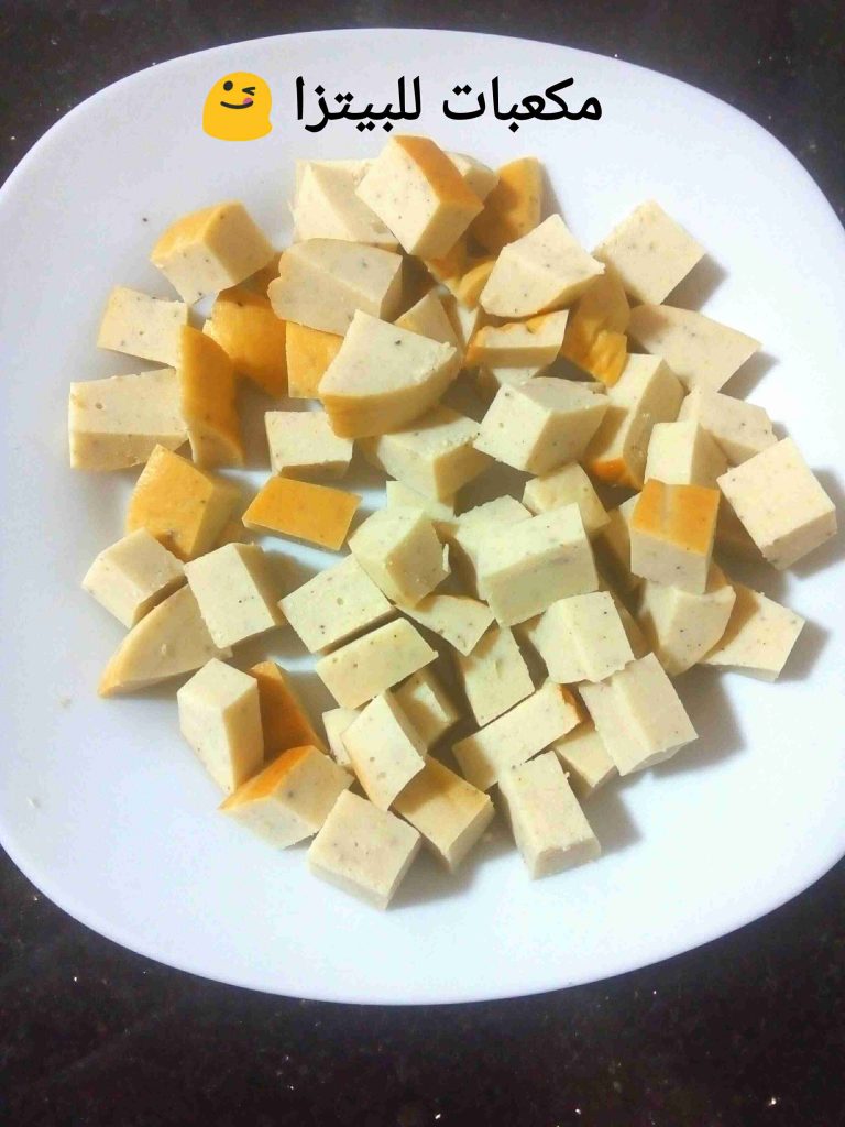 وبتقطعيها عادي وبتقدميها ساندويتشات او عالسفرة وممكن تقلي الشرائح بطلع طعم مختلف كليا واحلى أحلى شي مكعبات عالبيتزا طعم خرافي.
