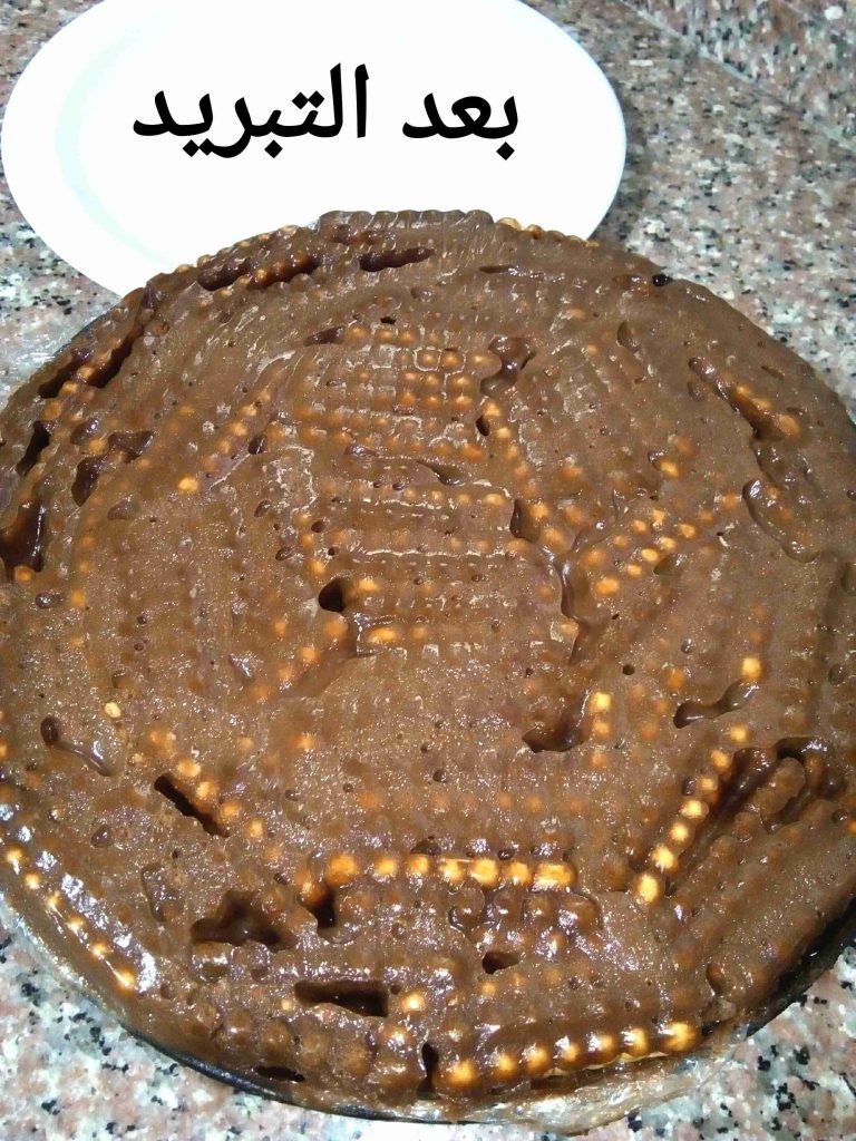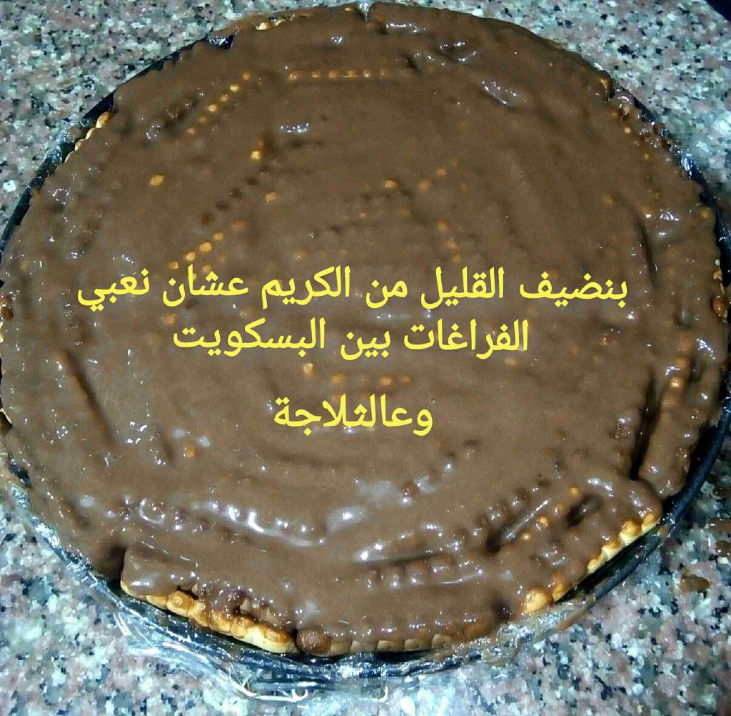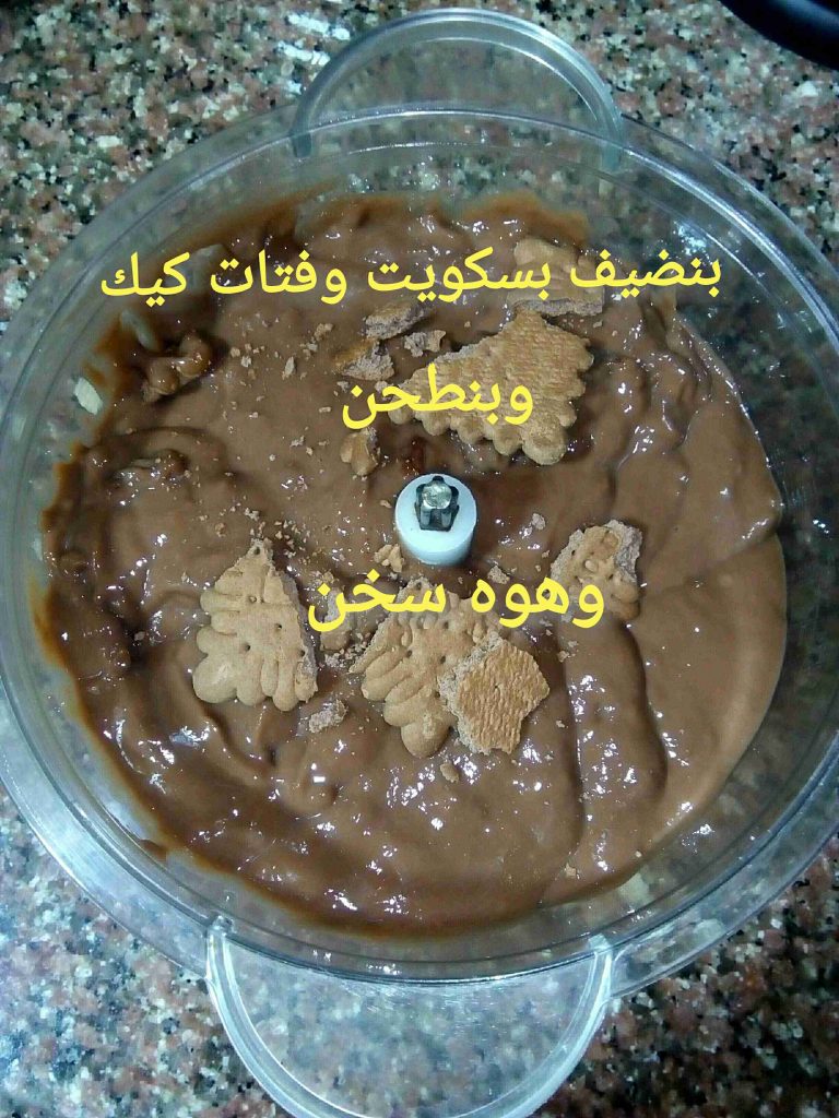 عملته بطريقة سهلة ومضمونة وهيه عبارة عن ظرفين كريم كراميل عملتهم بطريقة المصنع المكتوبة عالعلبة وبس نزلتهم عن النار ضفت شوكولا حبيبات او كاكاو انا ضفت الثنين وبنخفقهم كويس وبنضيف عليه فتات كيك شوكولا او بسكويت مكسر او الثنين وبنطحنه كويس لحتى يختفي كل الكيك والبسكويت ويصير خليط ناعم .