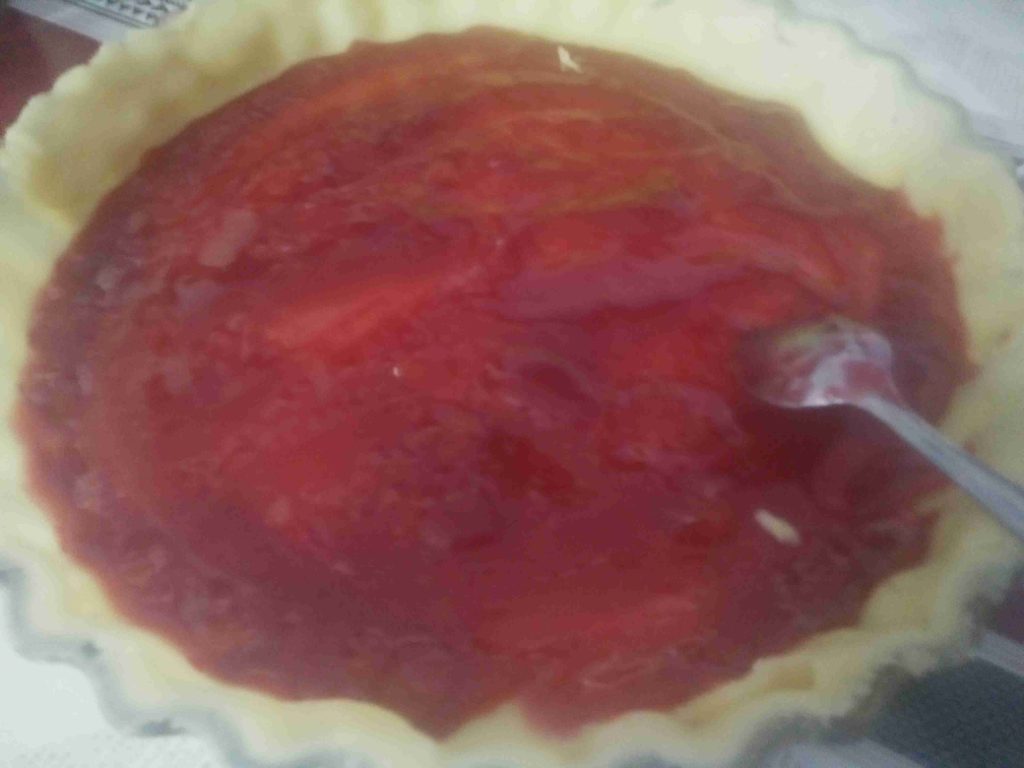 الآن نفتح القسم الثاني من العجينة و نغطي بها المربى