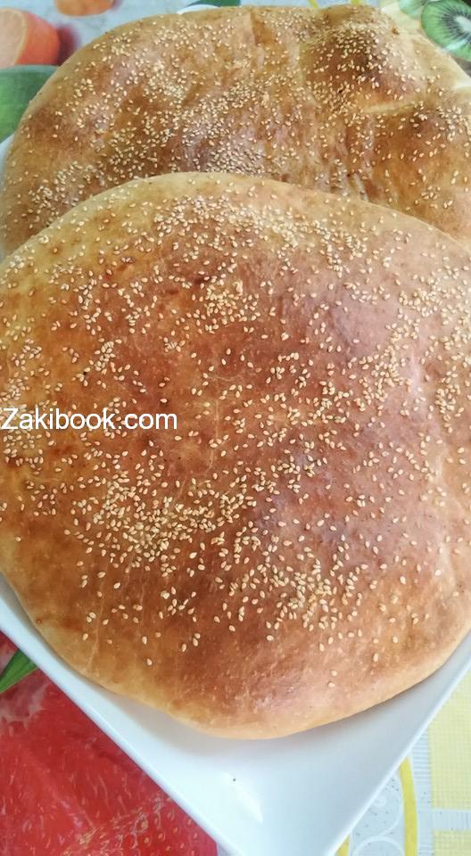نتركه يخمر نصف ساعه ونقطعه ونرقه ونضعه في صينيه مدهونه زيت وندهن الوجه بياض بيض مع شويه خل وبنتركه ساعه يرتاح قبل الخبز