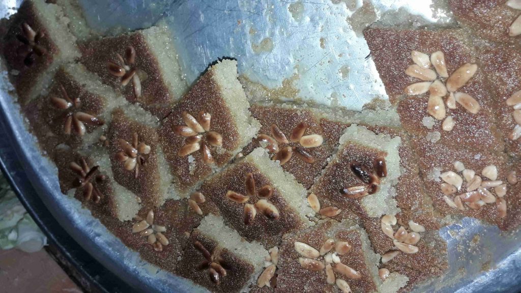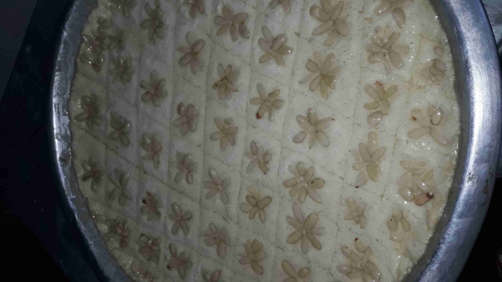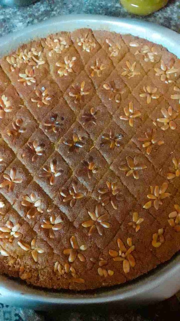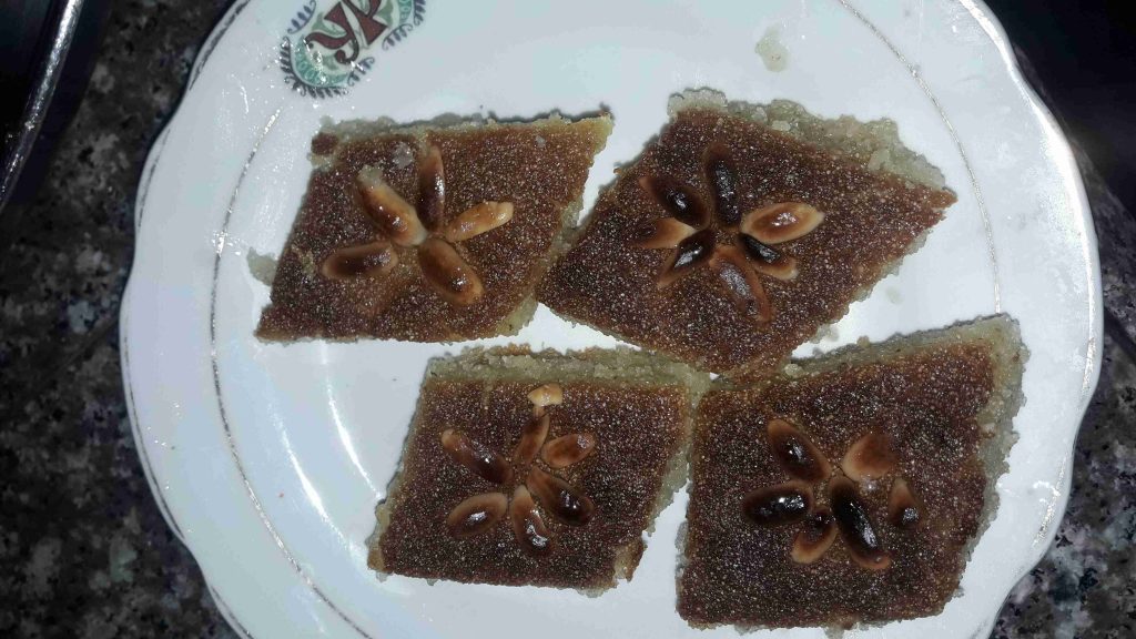 اول اشي بخفق سوائل مع بعد بتركها ٥ دقايق تتفاعل وبنزل سميد شوي شوي بعدها بدهن صنيه طحينيه وبنزل الهريسه برقها بصدر وبملسها بزيت وبقطعها وبحط فستق يا لوز حسب رغبه بس تطلع من الفرن بسقيها بقطر فاتر وتقيل شوي بخليها لا تاني يوم تتشرب على راحتها انا هون عملتها بفرن غاز حميتو بلشت اعمل فيها بس خلصت نزلت الحرارة للوسط وحطيتها بس تحمرو لاطراف حمرت الوجه والف صحه هنا يارب