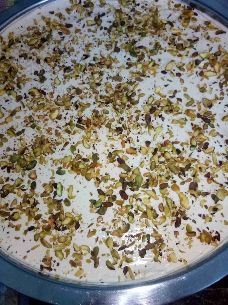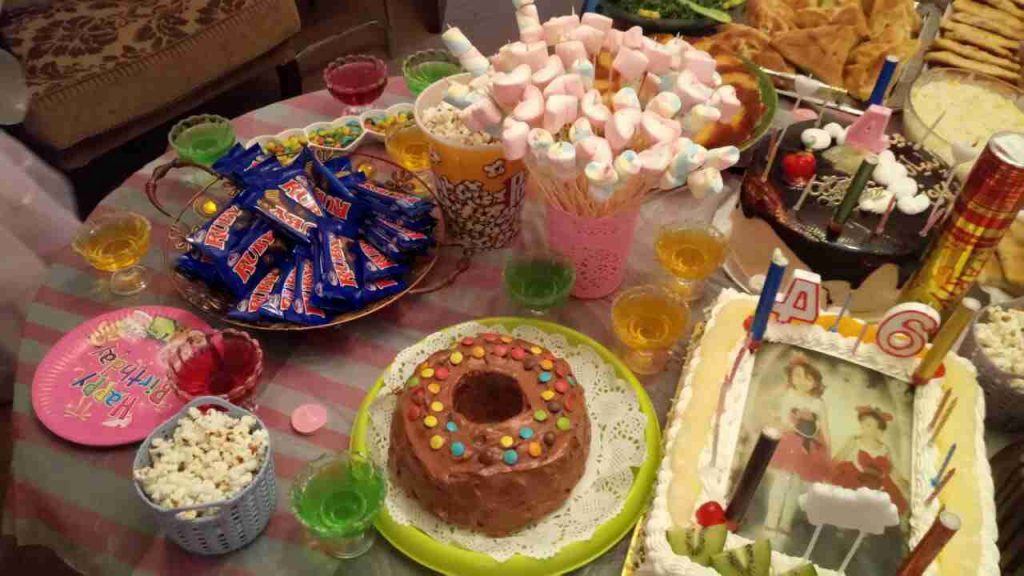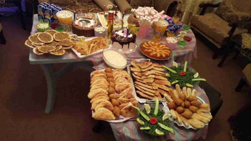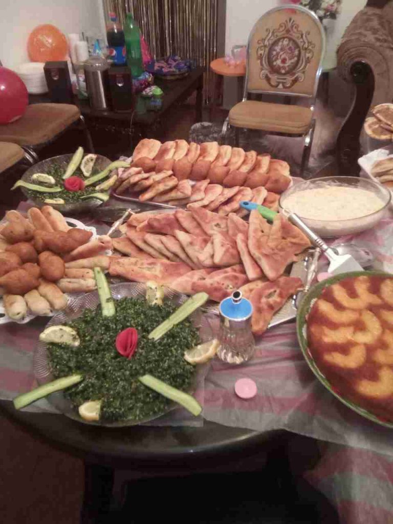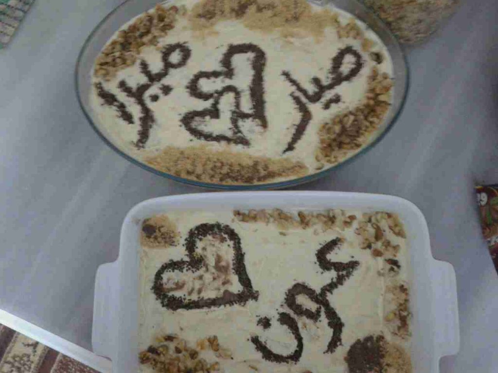 عيد بنتي وواولاد أختي ما شاء الله كلهم مواليد شهر تلات طبعا كل وحدة فينا عملت شي أنا عملت كيكة الأناناس وليالي لبنان وأختي عملت كيكة بالشوكولاتة مرة أخوي عملت صينية مهلبية بالبسكوت والجلي ومرة أخوي التانية عملت صينية بسكوت بالكريمة والكاكاو عدا عن البوشار والجلي وعيدان المارشميلو إلي جهزناها والتبولة وسلطة الذرة بالمايونيز