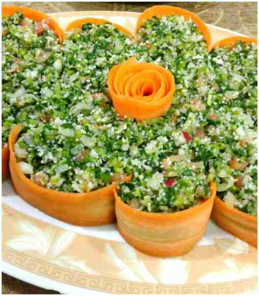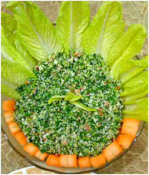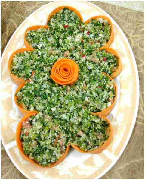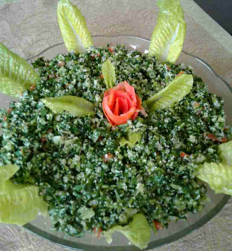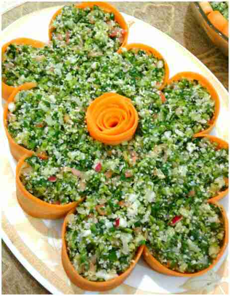 – نضع التبولة في طبق التقديم ، ونزينها حسب الرغبة .