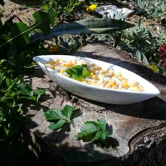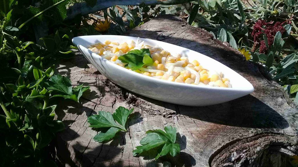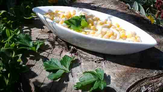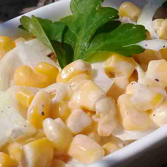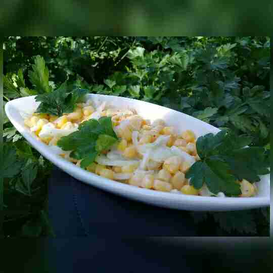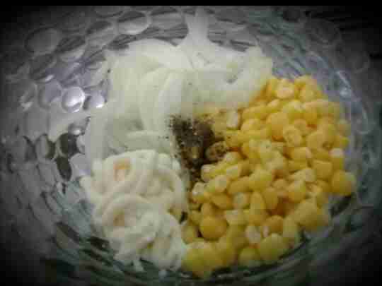 أغسل الذره بالماء جيدا وأضعها في صحن وأضع باقي المكونات جميعا وأقلب جيدا