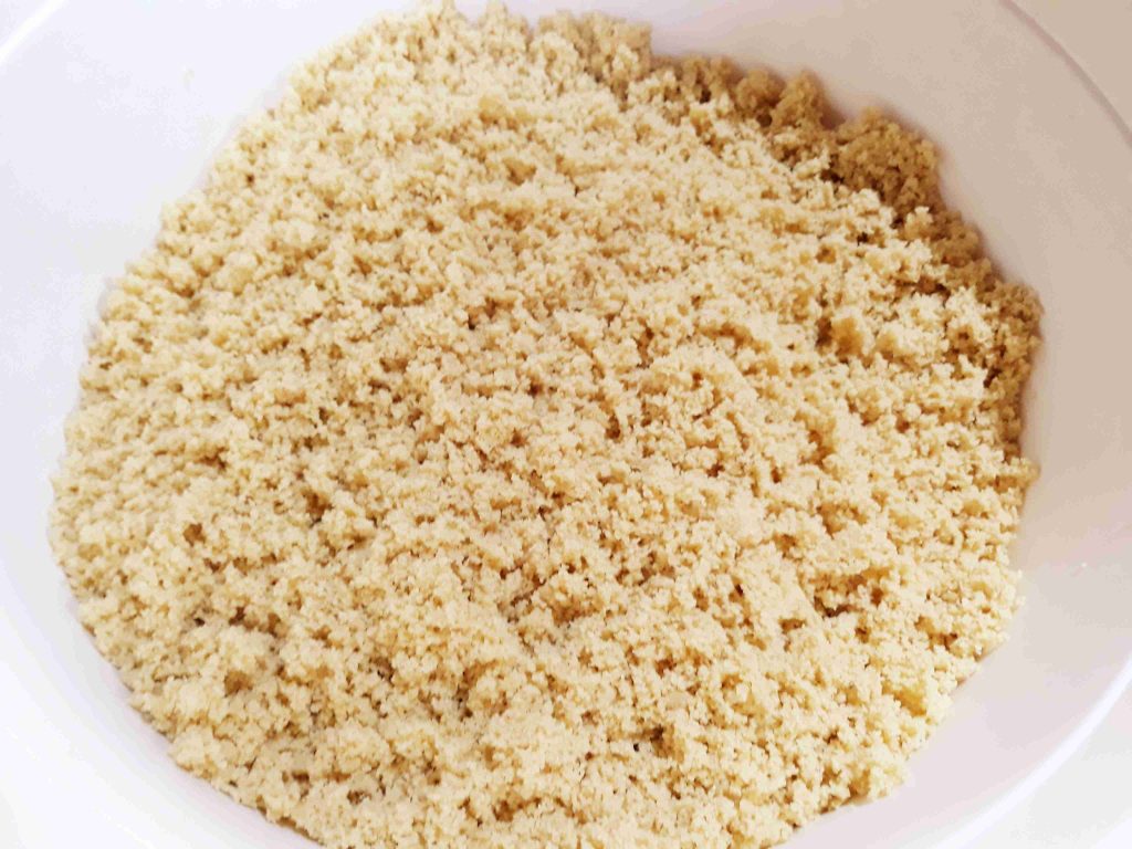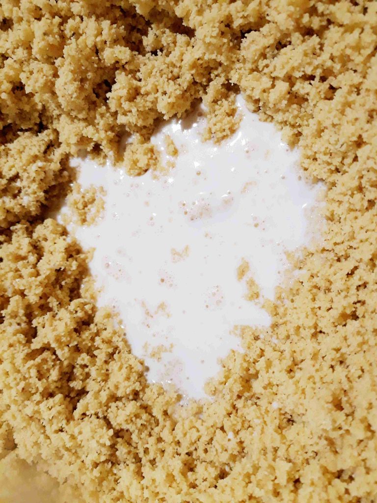 نضع السميد والطحين وبهار ويانسون والشومر والحليب والسمنه السايحه والزبده السايحه ونبس منيح من دون اي سوائل ونتركه يوم او يومين