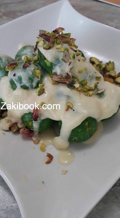 وبنخلطهم سوة ونحطها فوق الكرات وبنرش فستق