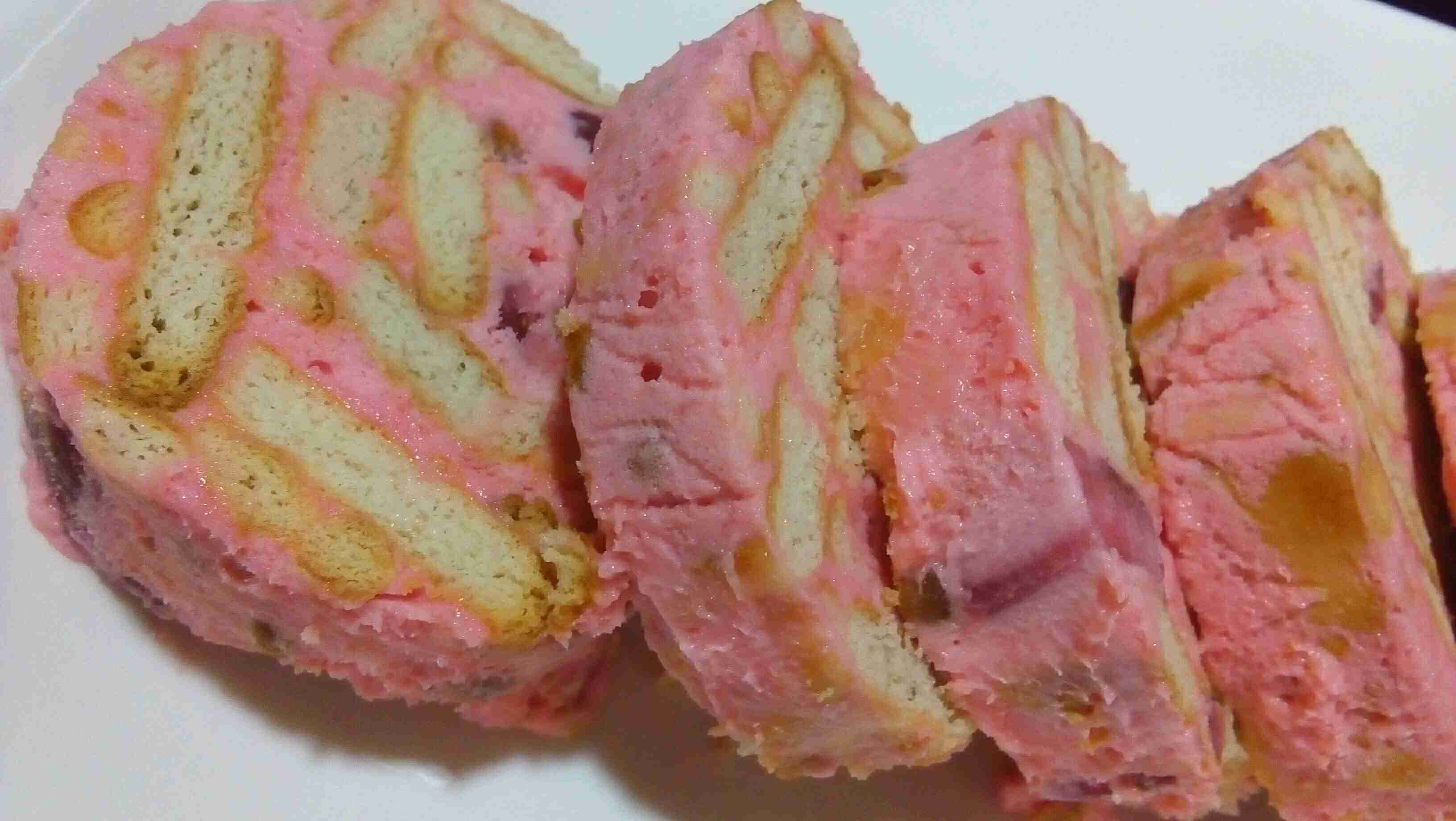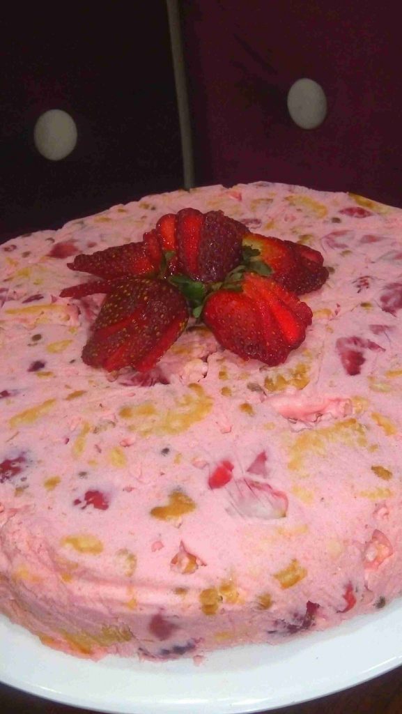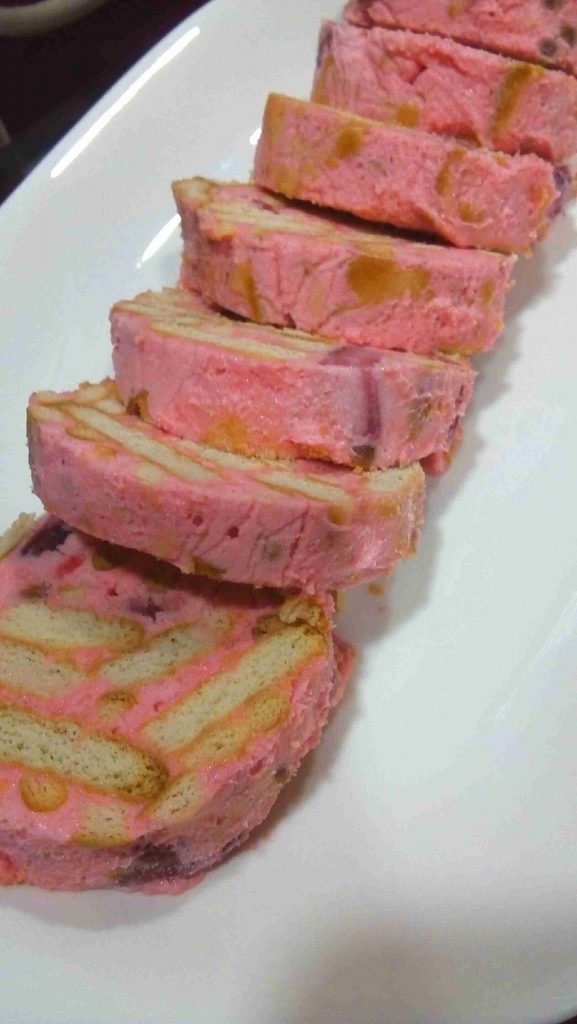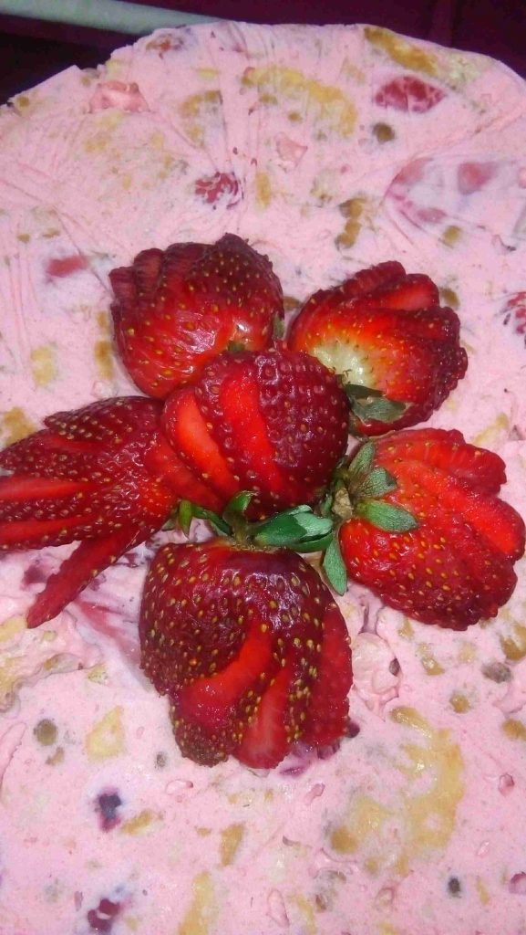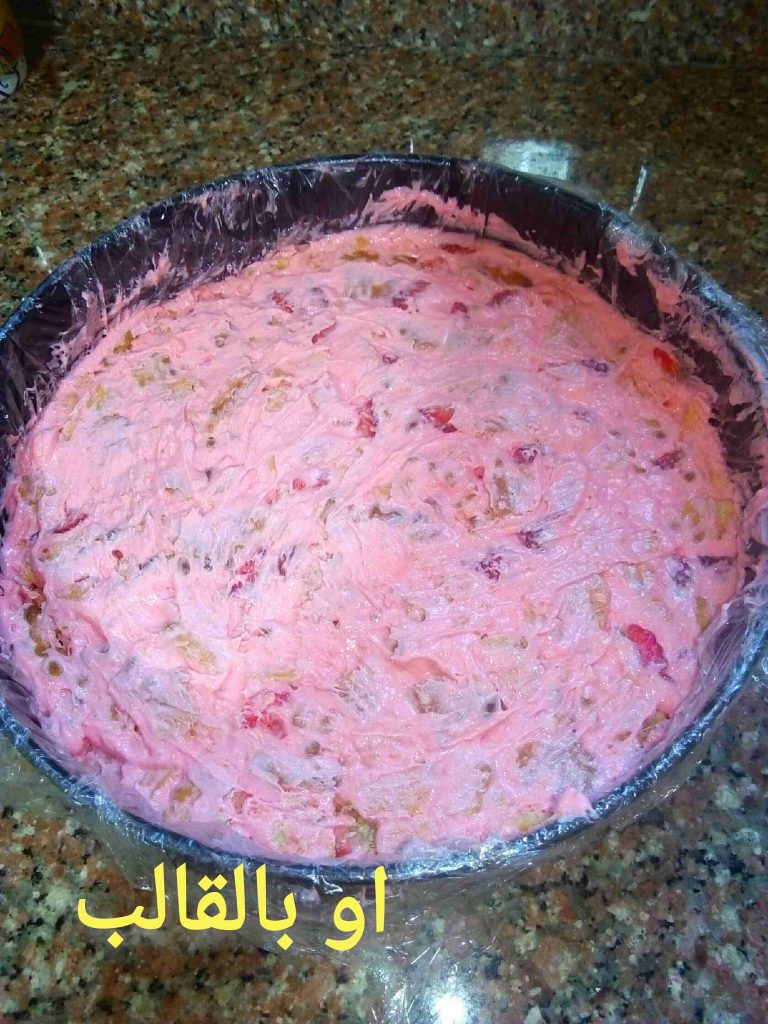 بنطلعه بعد التجميد وبنقسمه على زوقنا وبنقدمه منظره منعش وطعمه رووووعة بيشبه طعم الايس كريم عفراولة ، وصحة وهنا