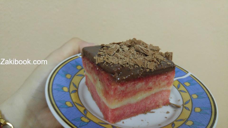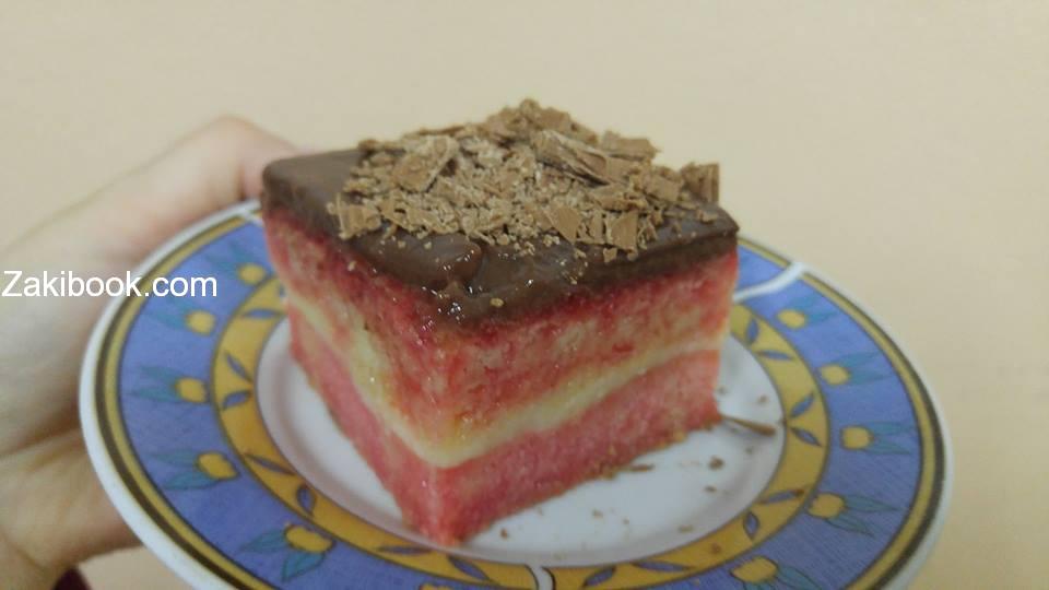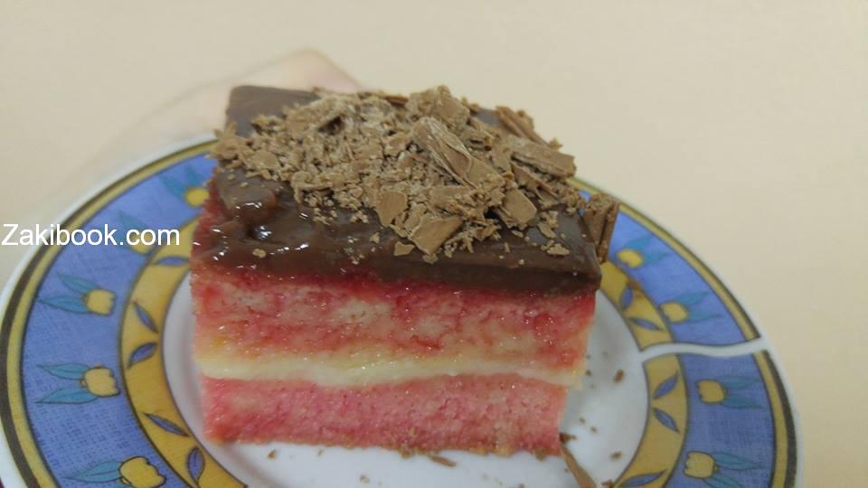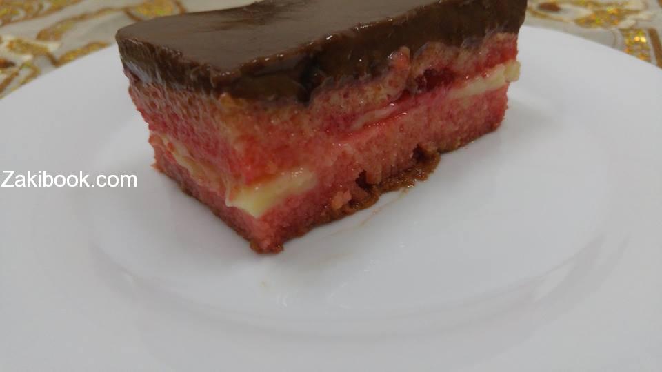 كل هذه المكونات اجتمعت معاً في الكيكة الفرنسية الفاخرة التي تتكون من طبقتين من الكيك الفاخر المسقى بصوص الفراولة, مع حشوة من الكريم باتسيير الفرنسي, ونكهة الشكولاتة تكسوه من الأعلى, وصفة فاخرة لضيوفكم ولمناسبتكم السعيدة وبعيدة عن التقليد والروتين, لنتابع الطريقة مع زاكي.