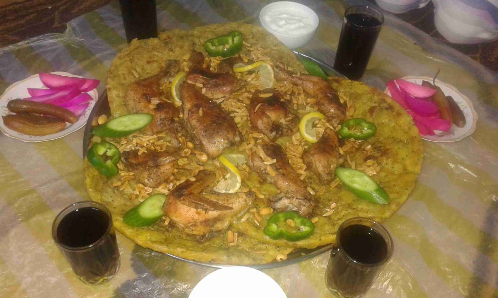 بعد ماكلشي استوا نيجي للتقديم بنحط الخبز بالبصل بصينية تقديم مناسبه وبشيل الجاج من الصينية وبرتبو ع وجه الخبز وبرش للجاج سماق وبزين باللوز المقلي وصحة ومية هنا على قلوبكم ،،، ياريت اكون وصلت الفكرة والطريقة بصورتها الصحيحة والله يعطيكم العافية