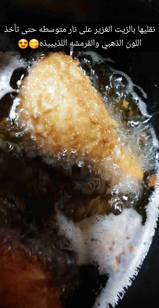 نفرد عجينة بيف باستري ونقطعها ٤ مربعات صغيره او يُباع حجم صغير جاهز نفرده ثم نضع الحشوه بالوسط ونضع اصبع البطاطا المقليه على زاوية العجينه ونلُم الأطراف ونلُفها ونضغط عليها حتى نتأكد انها مغلقه جيداً كما هو موضح بالصور ثم نغطسها بالبيض المخفوق مع الحليب والبقسماط ونقليها وتلذذي بالطعم الراااااائع والمقرمش واللذييييذ انصحكم بتجربتها