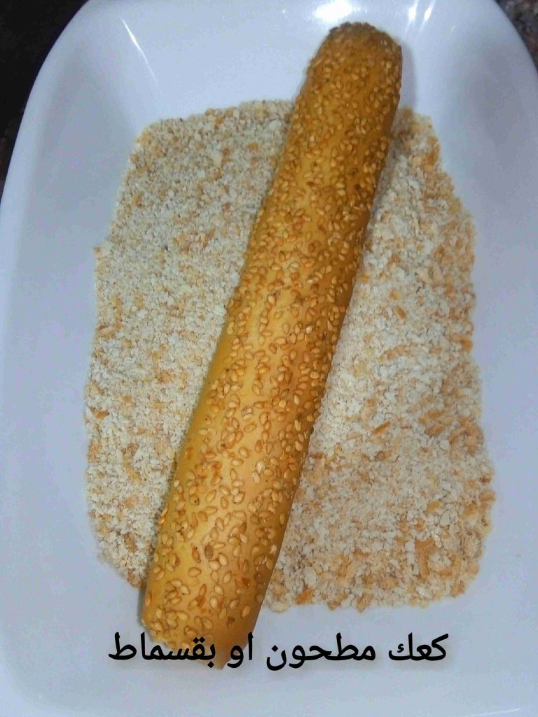 وبصحن ثاني بنجهز بقسماط او كعك مطحون غير محلى انا طحنت كعك من عندي من البيت بس شلت السمسم عنه