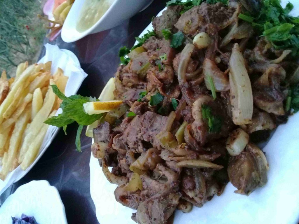 بقطع الكبده لقطع متوسطه بغسلها بطحين وزيت وليمون وبصفيها كويس