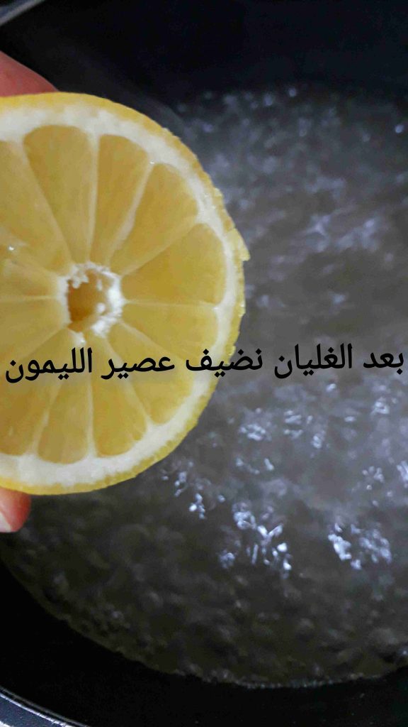 — بعد الغليان بنعصر ليمون وبنتركه يغلي على نار متوسطة لمدة 10—12 دقيقة عشان يثقل لانه حلويات رمضان بدها قطر ثقيل من قطايف وعوامة واي حلو مقرمش.