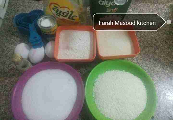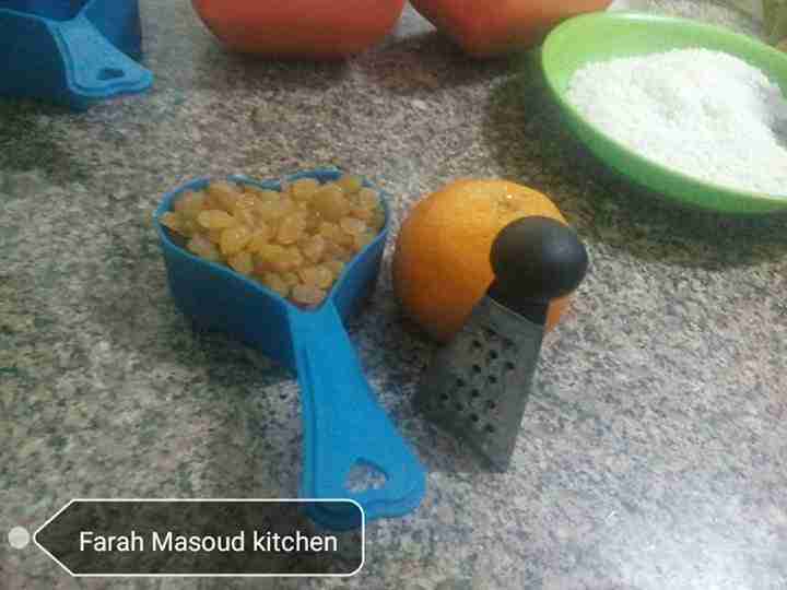 تخلط جميع النواشف و يضاف برش البرتقال يضاف المكونات وتقلب توضع بصنية مدهونة وتدخل لفرن حامي من قبل من الوسط من نص ساعة لا ٤٠ دقيقة تقريباً
