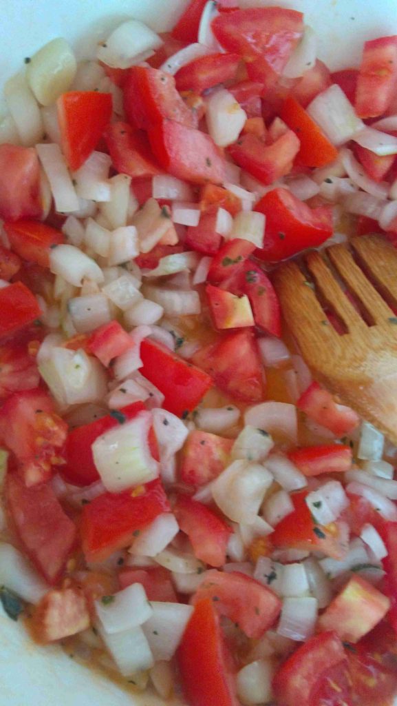 نقطع البصل والثوم والبندورة بشكل عشوائي