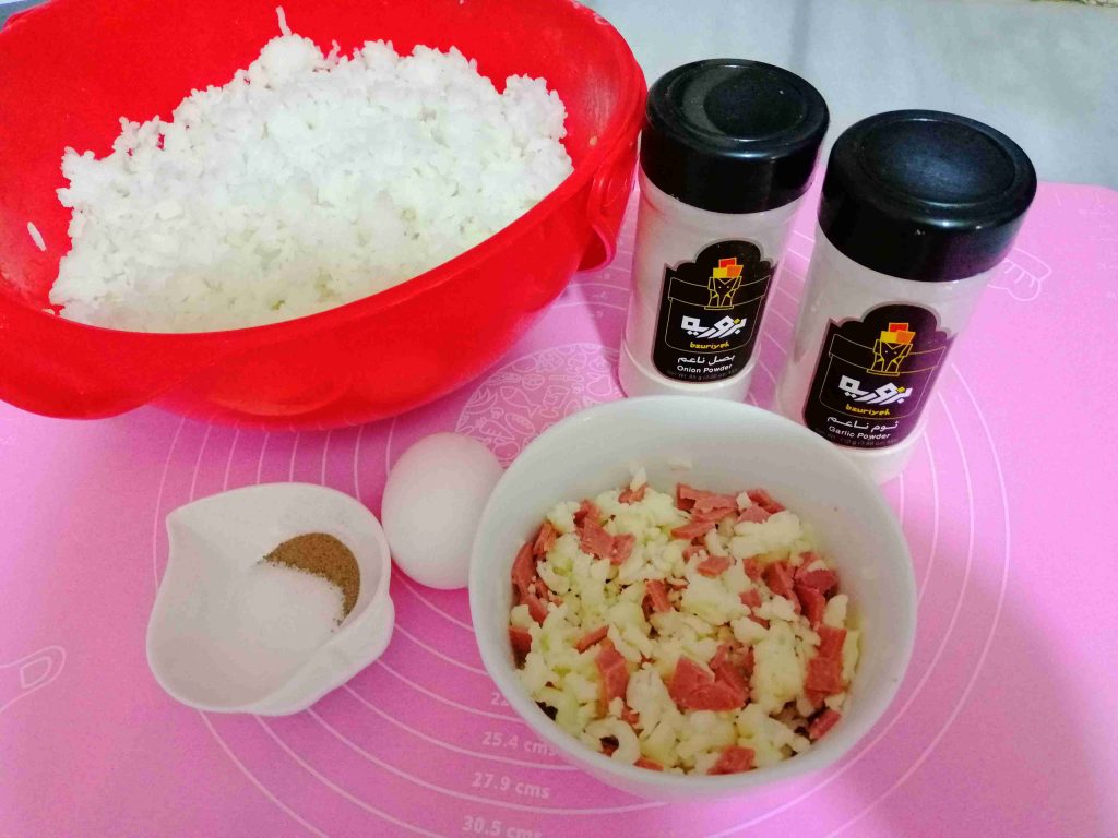 بنحط الرز المسلوق وبنضيفله البهارات والملح والفلفل والبيض وبنخلطهم كتير منيح