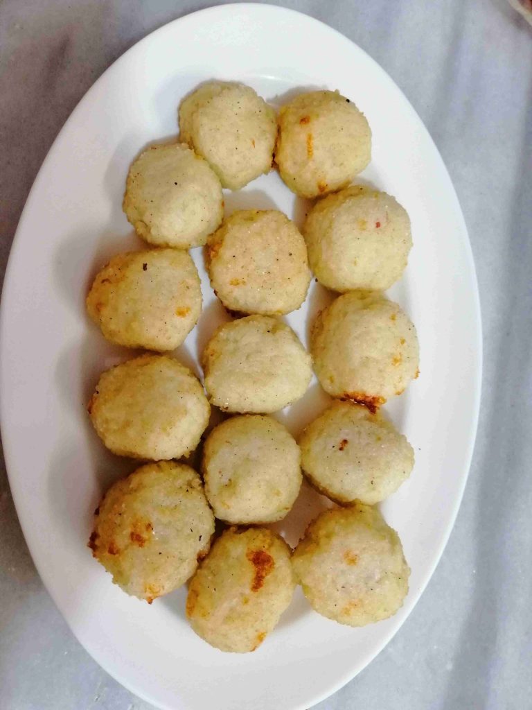 بعد هيك بعملهم أقراص وبنكون مجهزين الحشوه… الحشوه جبنه موزاريلا مبروشه وبنضيفلها سلامي مفروم.. منحط الحشوه بنص القرص وبنعمله كره والحجم متل مابتحبي