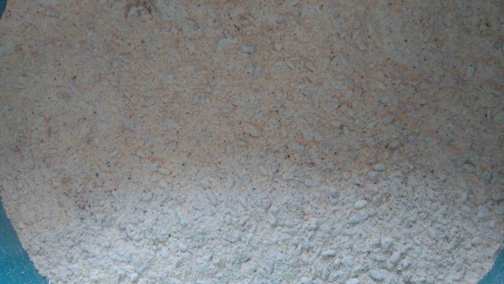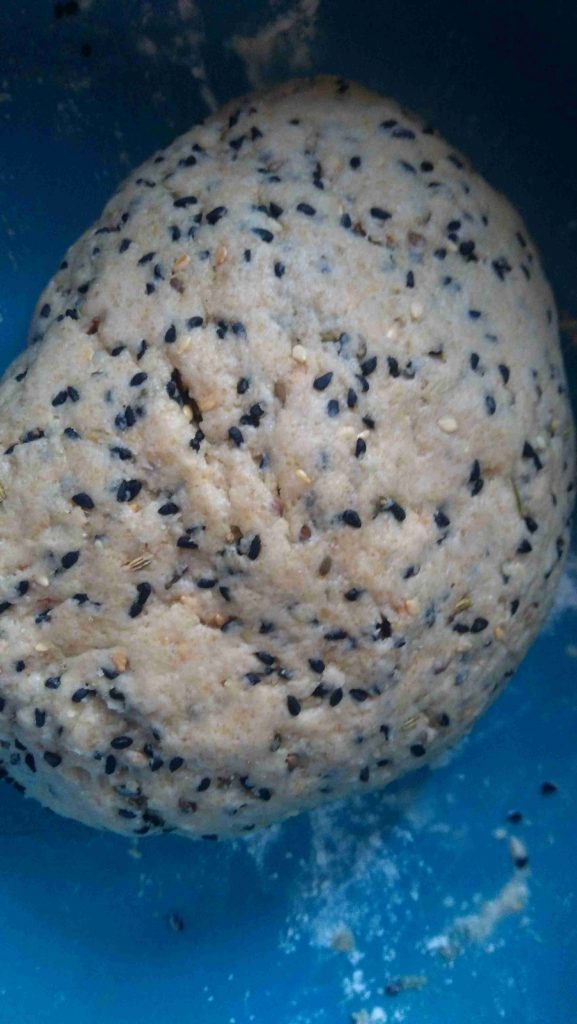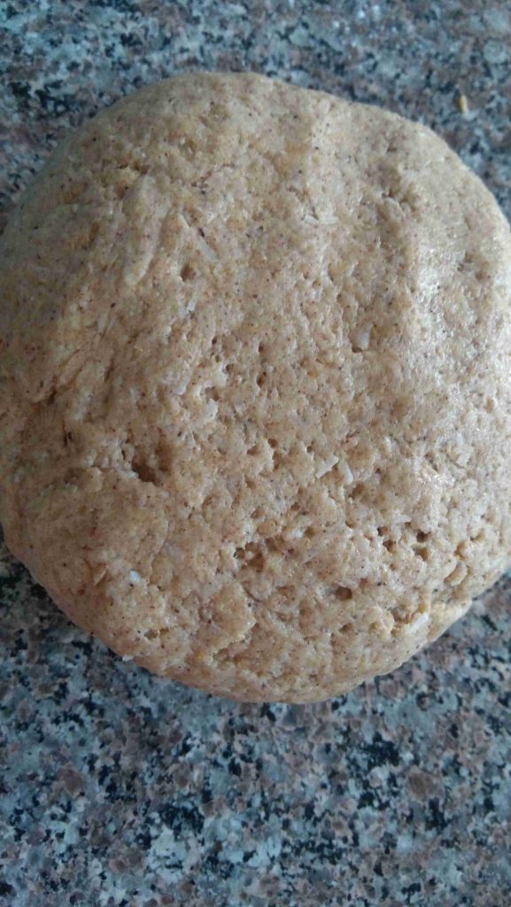 ..المهم ثم نضع الزيت ونخلط بطريقه الفرك ….ثم نضيف الماء تدريجيا …لتتكون عنا عجينه ملساء ناعمه وطريه