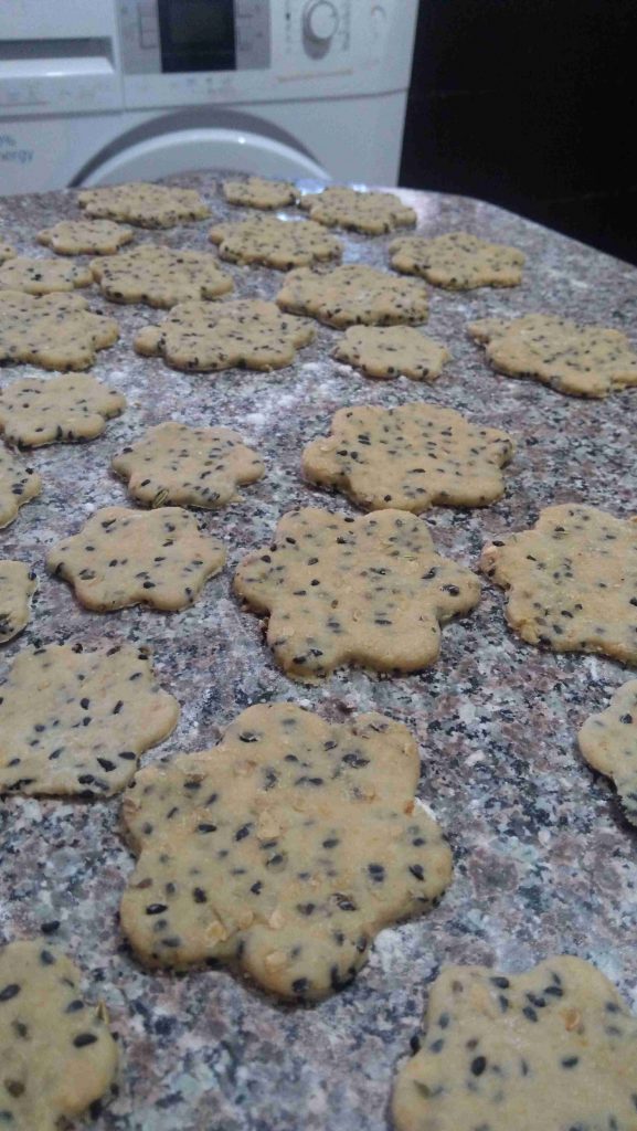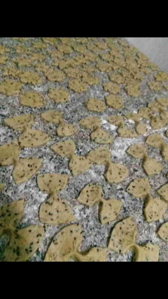 نريحها عشر دقائق …ونركها ع سطح مرشوش طحين ونقطعها بالقطاعات او بسكين نعمل شرائح
