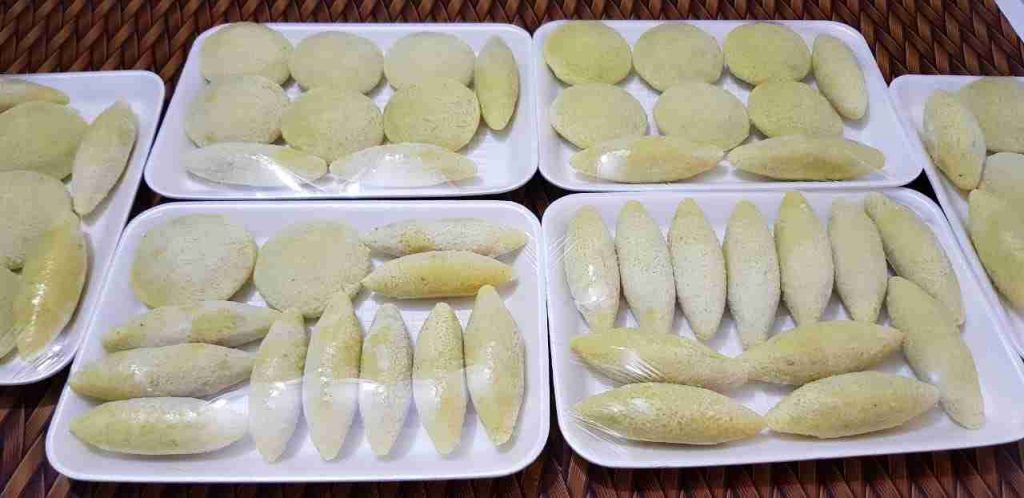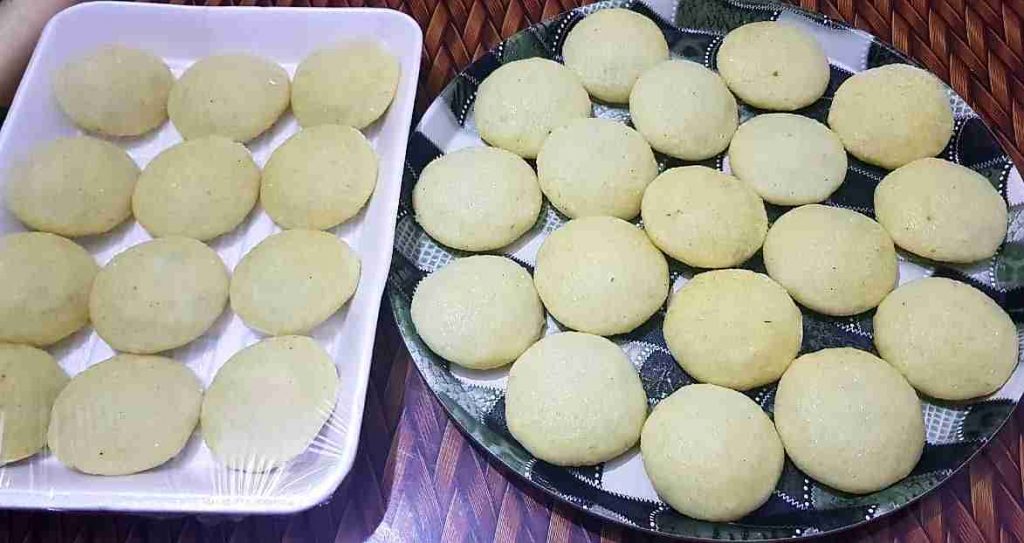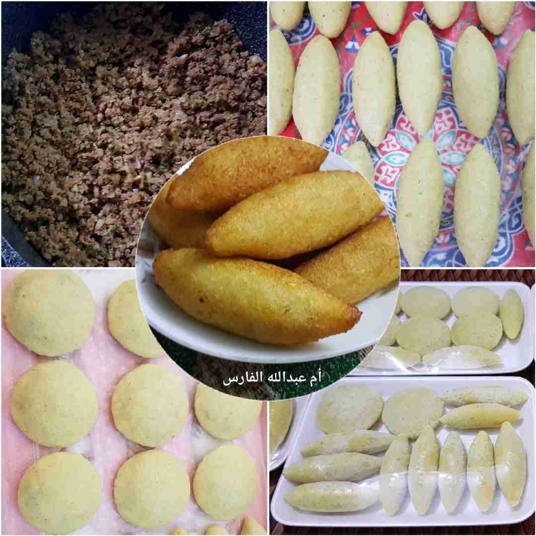 بعدها نفرغه بصينيه و نرش عليه ملعقة طعام نشأ و نعجنه باليد أو ممكن نعجنه بالعجانه او الفرامه. نلم العجينه و نغطيها و نبدي نحشيها و نحفظها بالفريز و تُقلى بالزيت (الأفضل تكون مقلاة عميقه و غير لاصقه)
