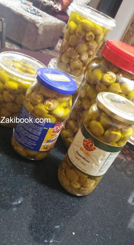 * أول شي نفرغ الزيتون الأخضر من البذرة <العظم الذي بوسطه > ,
