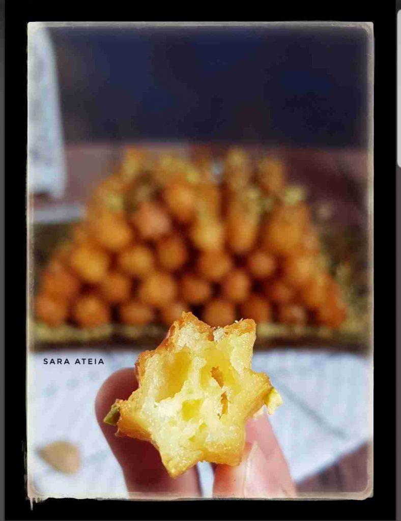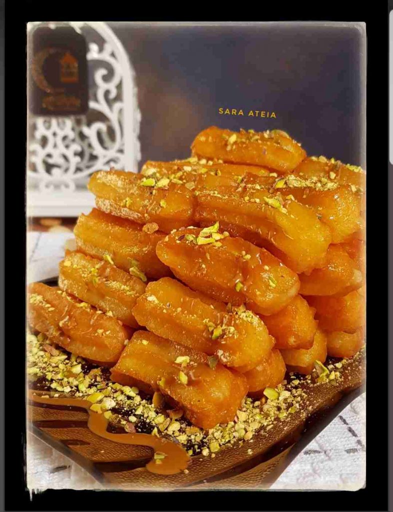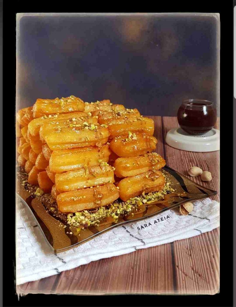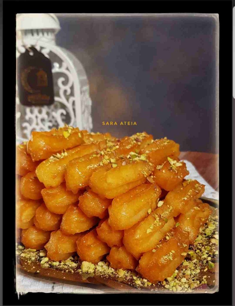 طريقتى الحصرية لبلح الشام المقرمش الهش بمكوناتى المظبوطه جدا المكونات كوب ماء ربع كوب زيت كوب ونص دقيق م.ك سميد م.ك كاستر رشة ملح ٤ بيضات م.ص فانيليا م.ك خل الطريقة نضع الماء والزيت على النار اول مايغلى نضيف المواد الجافه ونقلب لحد ماتلم معانا وتشكل عجينه اطفى النار واسيبها تبرد ثم اضيف البيض واحده واحده مع التقليب كل ماتخفى بيضه اضيف اللى بعدها مع اخر واحده اضيف الفانيليا والخل واعجنهم كويس احط العجينه فى كيس حلوانى مدهون زيت لسهوله نزول العجينه واستخدم قمع بلح الشام وانزل العجينه فى زيت بارد واول ماخلص الكميه اللى نزلتها اولع النار عليه لما يرتفع فى الطاسه اهدى النار واقلب لحد ماياخد اللون الدهبى واطلعه على شربات بارد تقيل مباشره تقلبتين واطلعه على مصفى عشان يفضل محافظ على قرمشته ونزينه حسب الرغبه