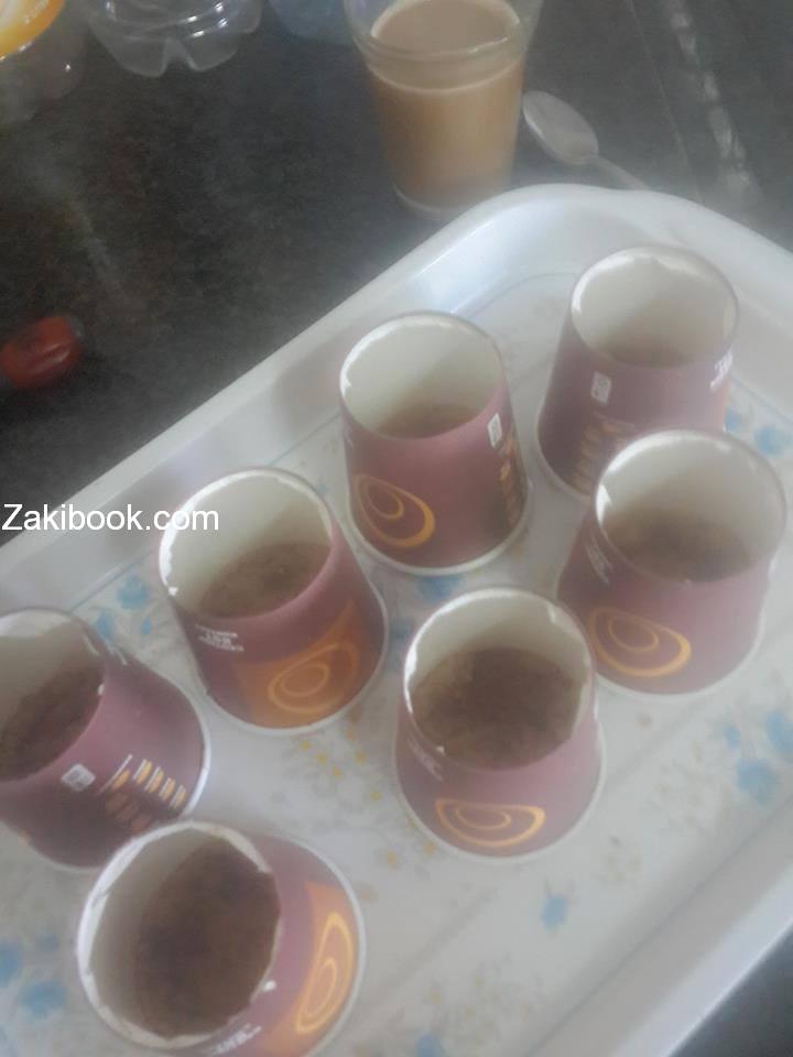 الطبقة الثالثة: برضو بغلايه قهوه بتحطي كوب حليب مع مغلف كريم كراميل بدون الصوص الاسود ومعلقه كبيره نسكافي وملعقه كبيره كاكاو وع الغاز بضلي تحركي حتى يغلي وبضفي ع الكاسات وع التلاجه شي ربع ساعه وبطلعي وبتزيني ع زوقك او شو موجود عندك وبتسحبي الكاسه شوي شوي وبطلع معك منضر كب كيك وصحه وعافيه مع فنجان قهوه ساده طعم روووعة.