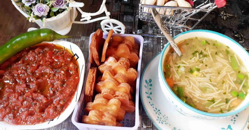 2- شوربه الشعيريه بالخضار وسلطه الفتووش وسلطه المشاوي التركيه للشيف المبدعة رشا رشا