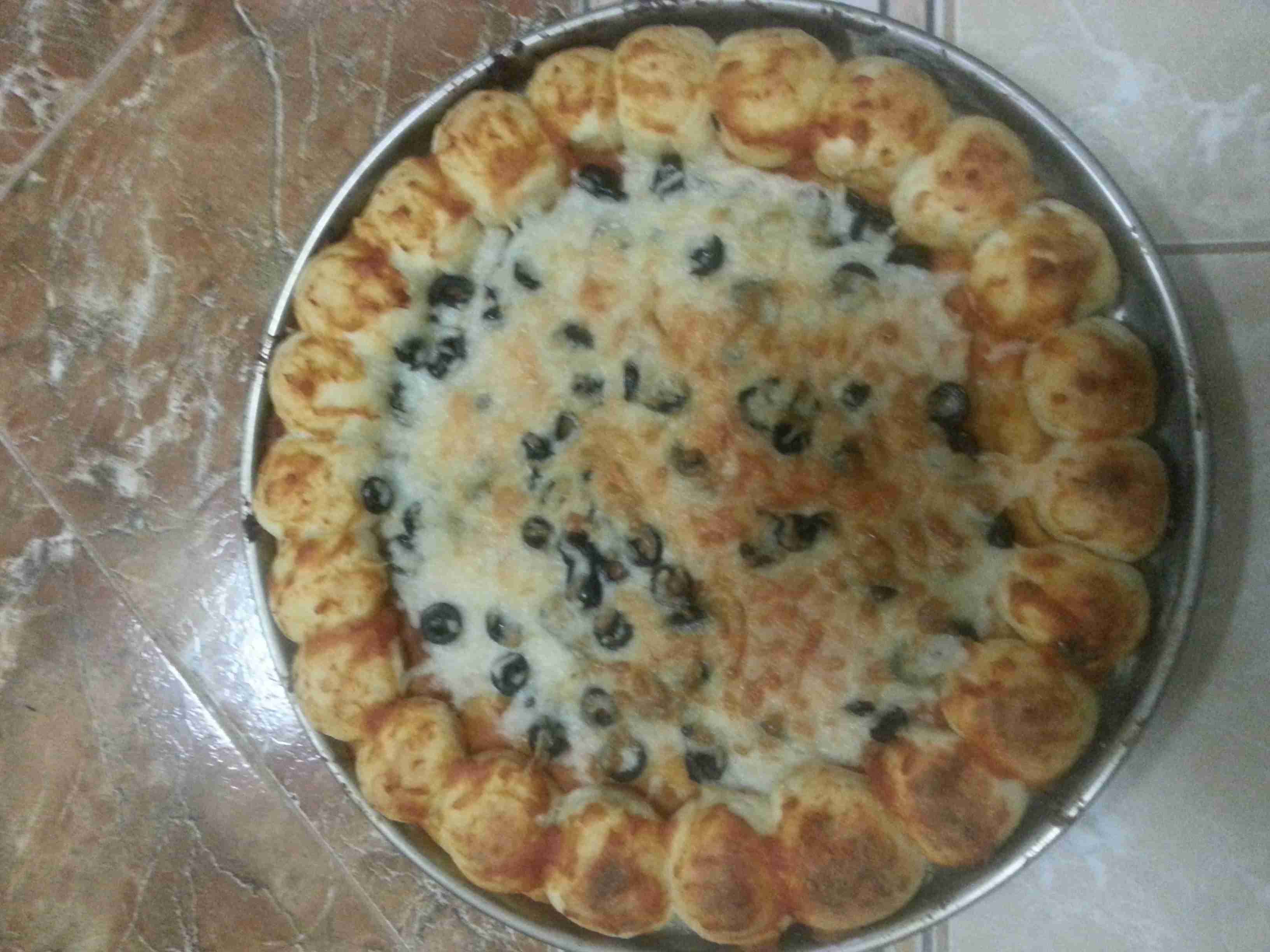 بعد 35 دقيقة تفرد العجين وتوضع في مقلاة مدهونة بالزيت وتوضع عليها الحشو ويدخلها الفون وتترك حتى تسوي وبالف عافيه