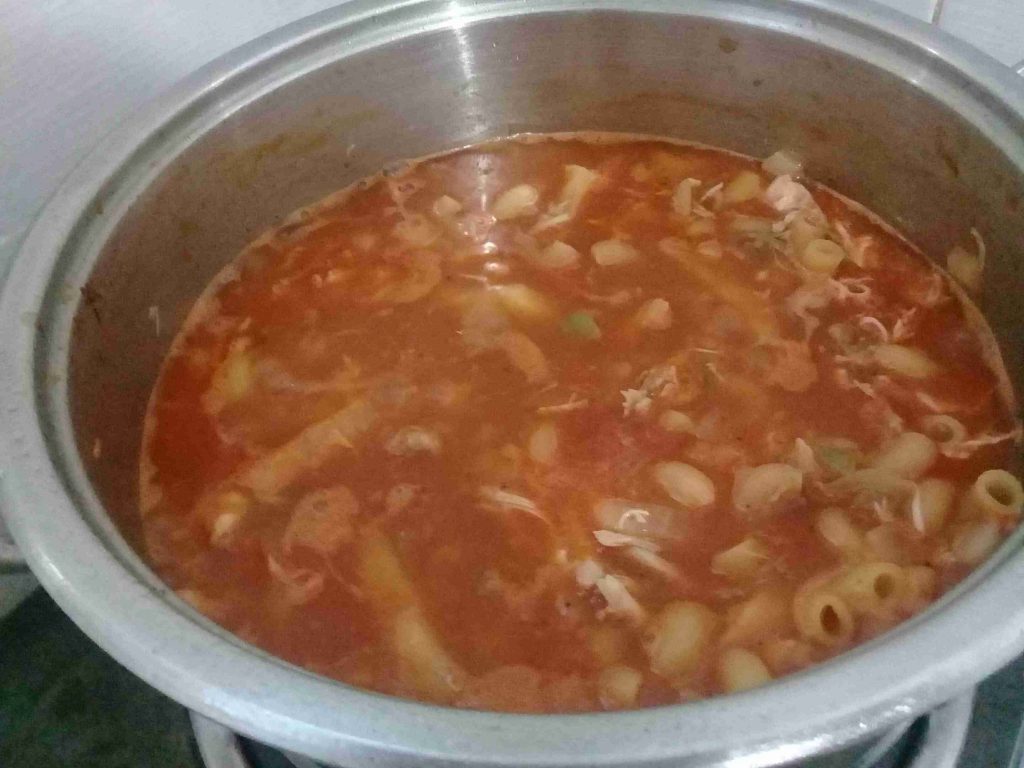 سخنت الطنجره وضفت السمنه قلبت البصله مع الفلفل ورشيت الملح لما دبلت البصله ضفت البندوره والصلصه تركتهم ليتسبكو ضفت البطاطا واللحمه وقلبتهم كويس ضفت المرقه والمعكرونه حركتهم مع بعض كويس ضفت الفلفل الأسود وحركت لما غليت وطيت عليها النار من فتره لتانيه كنت أحركها لما تشربت المرقه ضفت البقدونس وطفيت النار وتركت الطنجره مغطيه لوقت التقديم سهله وزاكيه وهى طلعنا أكله جديده من أكل بايب بدل ما نرميه جربوهاااااا يا أميرات
