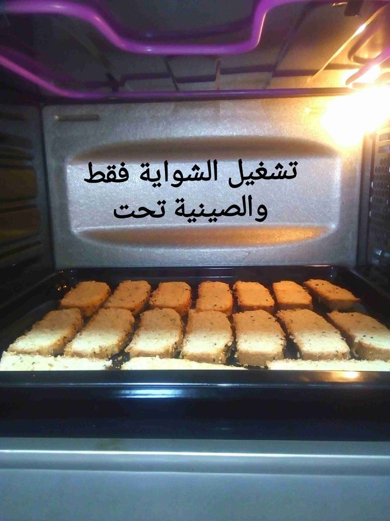 —بنشغل الفرن عالشواية وبنحط الصينية باول رف من تحت بعيدة عن الشوايه يعني عشان تنشف وتتحمر.