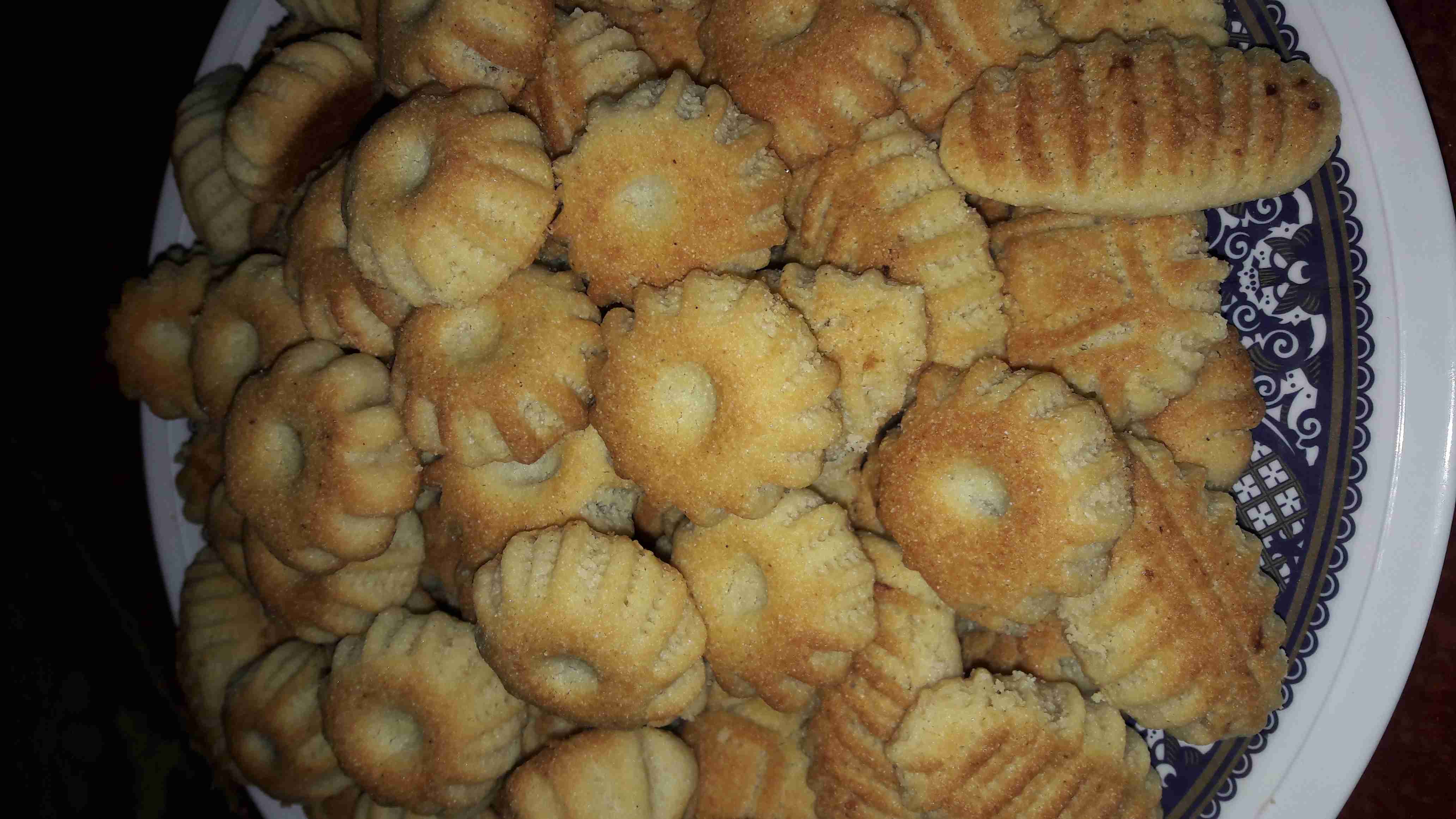 وبعدين ببلش احشي المعمولات ويا بشكلهم بالملقط بنقشهم نقش او بالقوالب طبعا انا هون عملتهم نقش وبس اجهز كل الكمية ببلش اشوي فرن حامي وبحمرهم من تحت وبعدين بحمرهم وبطلعهم وبتركهم بنفس السدر لماااااااا يبردو تماااام وبعدين بضبهم وعند التقديم بترشي ع الوجه سكر بودرة