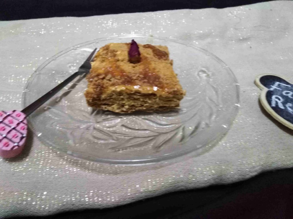 ثم طبقة صوص ثم بسكوت وتكرر لانتهاء الكمية