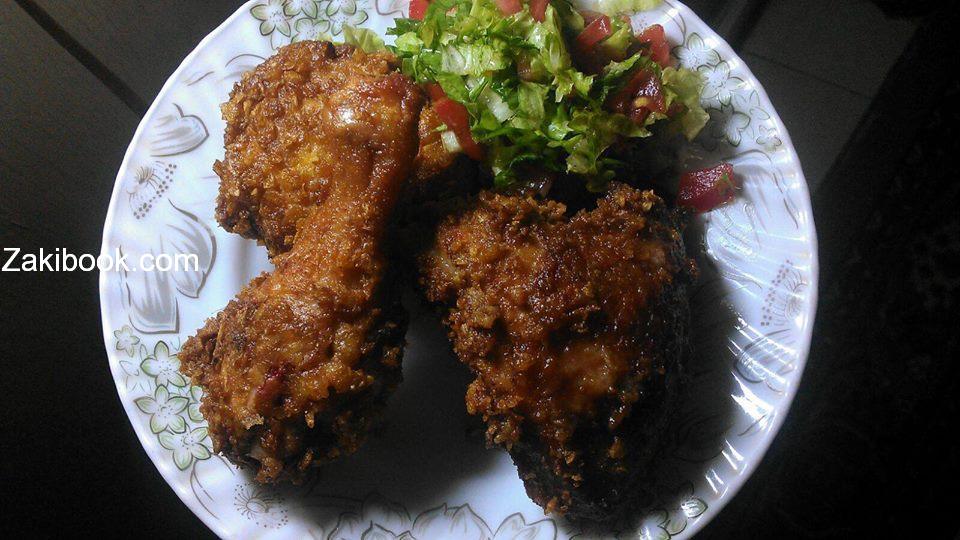 بتحطي بجاط ملح وفلفل وكاتشب ومايونيز وصلصة الصويا وتوم وزيت نباتي ولبن (زبادي ) ورشة كمون وبس هيك ضيفي قطع الجاج على الصلصة وأتركيون ليتشربو شي ساعتين تلاتة أو ممكن بنفس الوقت بس كل ماطال الوقت كل ماتشرب الجاج الصلصة وصار أزكى .. حطي الزيت عالنار وبلشي غمسي قطع الجاج بالكورن فليكس أو البقسمات وعالنار أول شي بتعلي الغاز وبعدين بس ينقلو ويحمرو بتوطي النار عالوسط ليستوي ألب الجاج وبالعافية ..