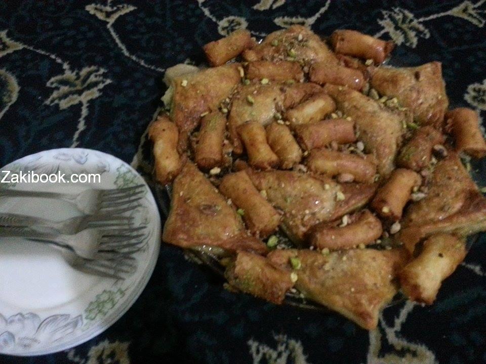 طريقة زنود الست نفس الشعيبيات بس أنا عملتها على شكل رولات وزينتها بالفستق الحلبي ..
